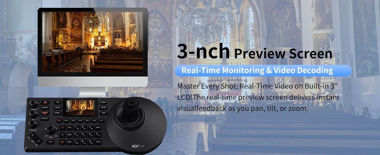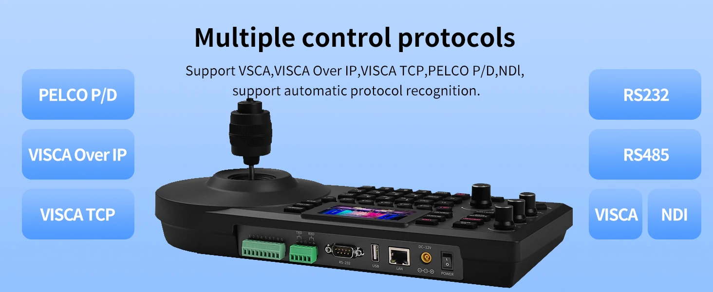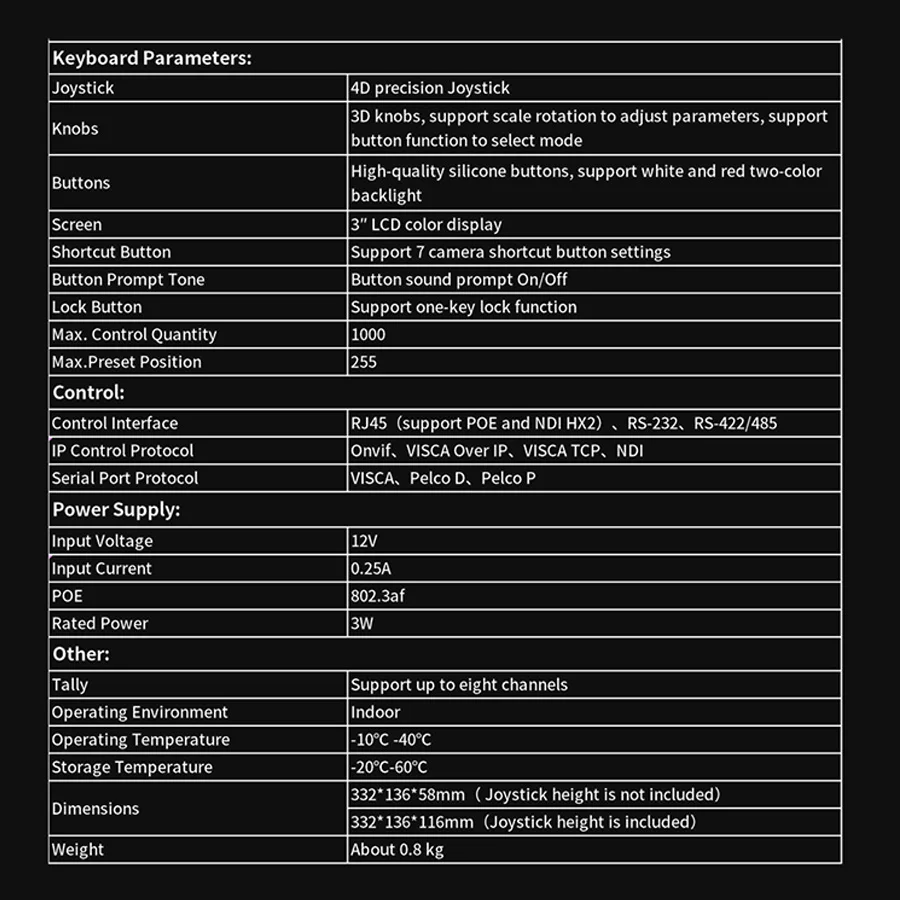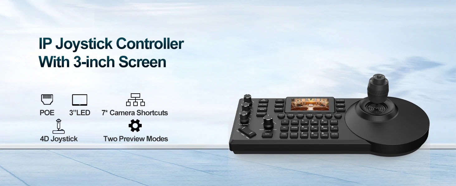 Tastiera di Controllo per Telecamera di Videoconferenza NDI con Schermo a Colori da 3 Pollici, Protocollo di Rete Visca Pelco-d/p, Console a Bilanciere a 8 Canali con POE