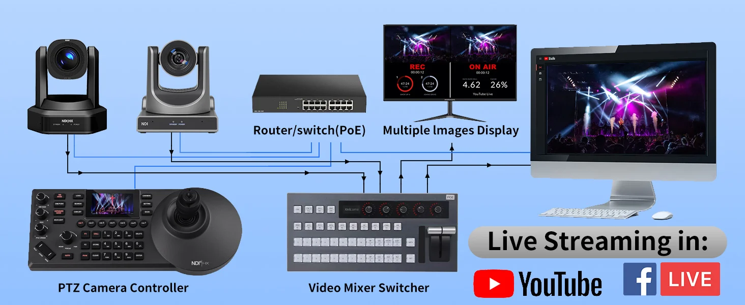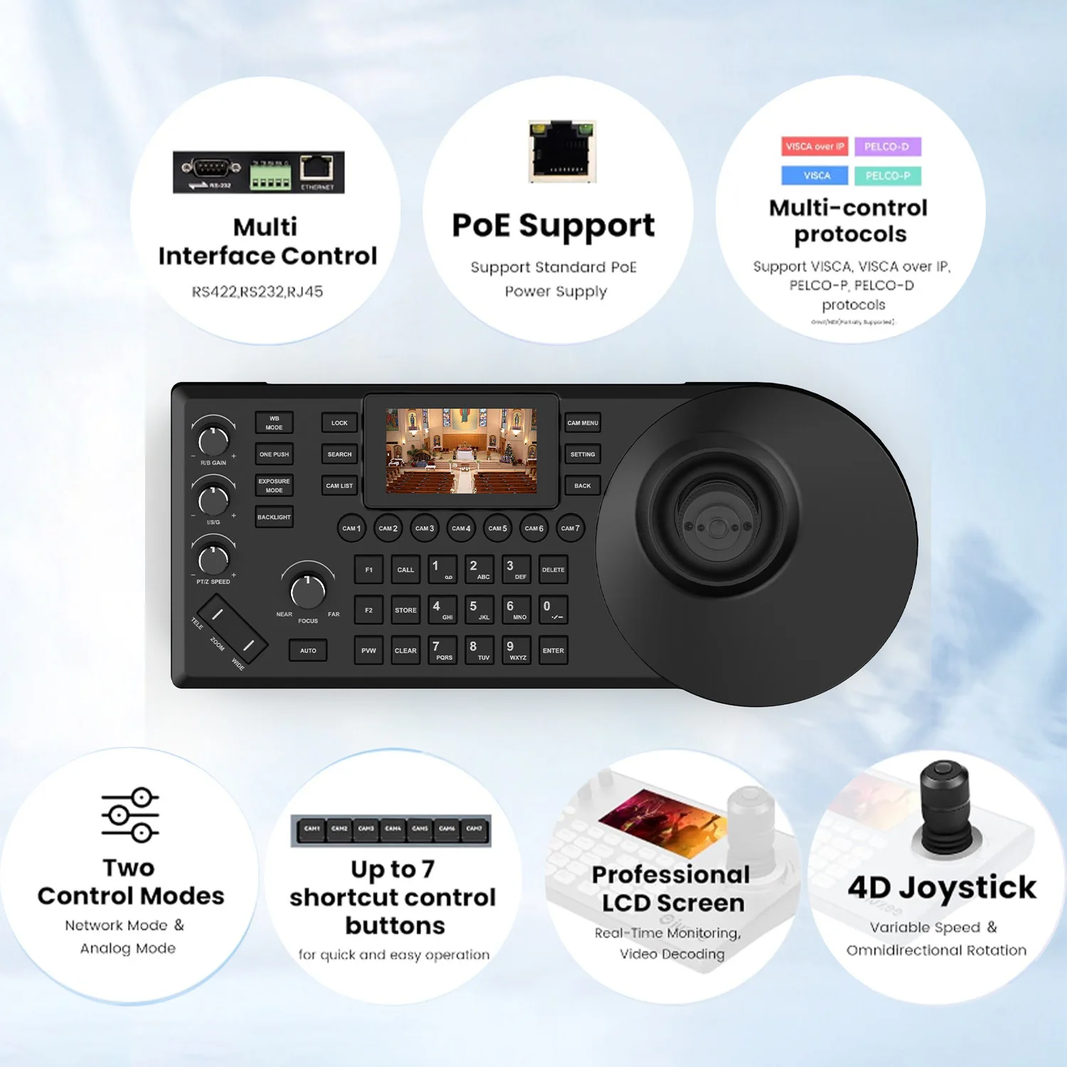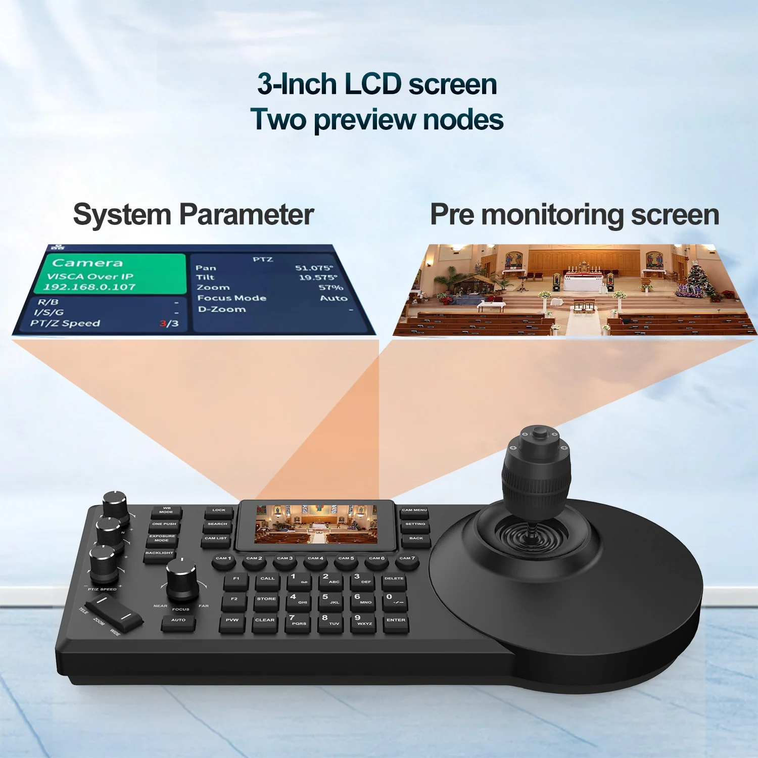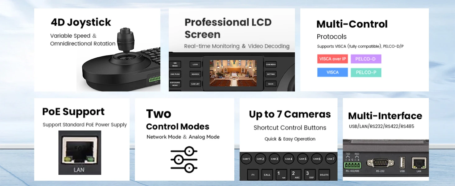 Tastiera di Controllo per Telecamera di Videoconferenza NDI con Schermo a Colori da 3 Pollici, Protocollo di Rete Visca Pelco-d/p, Console a Bilanciere a 8 Canali con POE