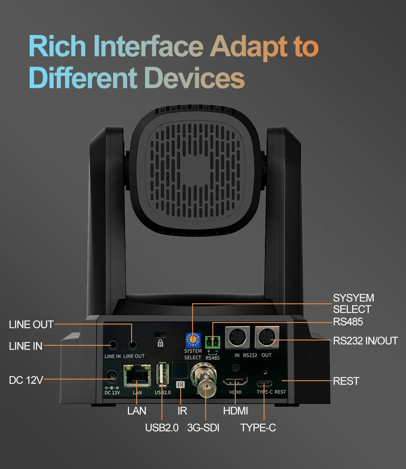 Utilizzando l’interfaccia RS232/485, tutti i parametri della telecamera possono essere controllati a distanza tramite comunicazioni ad alta velocità.