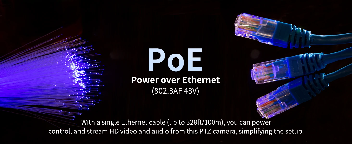 Power Over Ethernet (PoE) consente di alimentare la telecamera e trasmettere dati da un singolo cavo CAT5/CAT6!Non è necessario far passare cavi di alimentazione aggiuntivi.NOTA: è necessario un adattatore di alimentazione quando si utilizzano altre sorgenti video come HDMI, USB o SDI