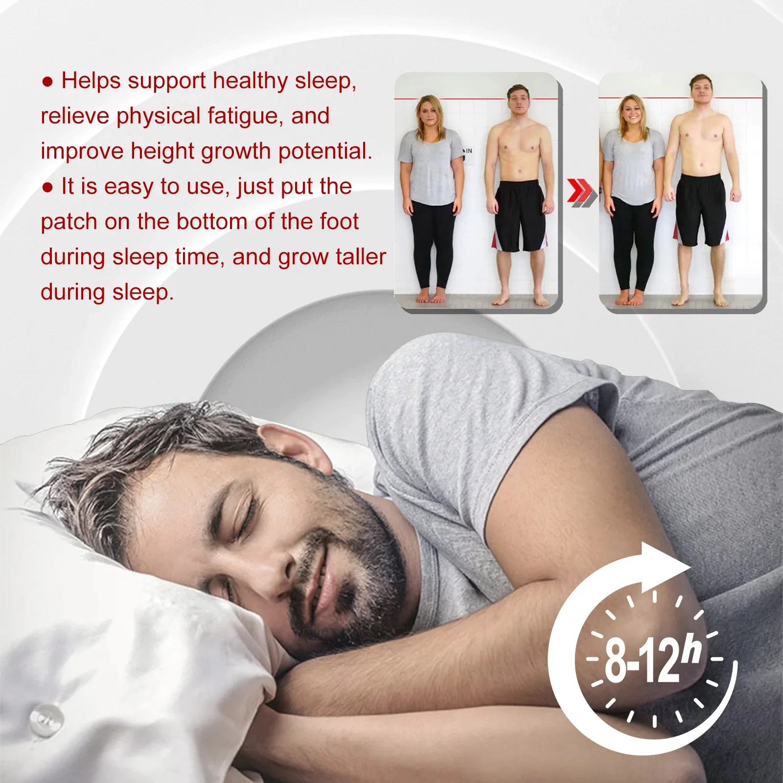 4.Indossare il cerotto durante la notte e mantenerlo in posizione per 8-12 ore, rimuovere il cerotto dopo l’uso.