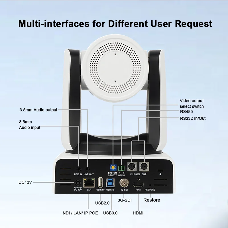 Supporta l’interfaccia HDMI e 3G-SDI, la distanza di trasmissione effettiva di 3G-SDI è fino a 150 metri (1080P30).HDMI o 3G-SDI, USB, LAN possono emettere tre segnali digitali HD contemporaneamente.