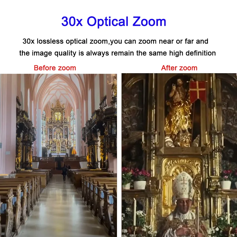 Adotta un obiettivo focale ultra lungo 4K con alta qualità e 8 milioni di risoluzione ultraelevata,3Zoom ottico 0x e l’angolo di campo massimo è59.2° .