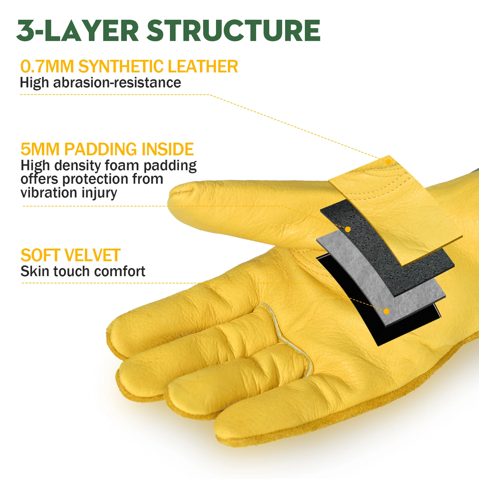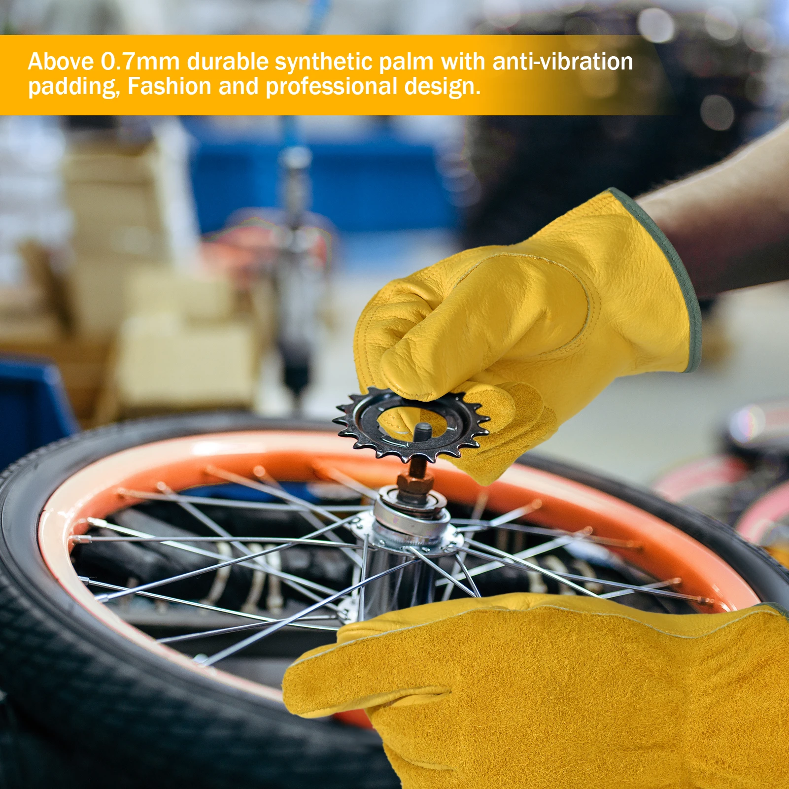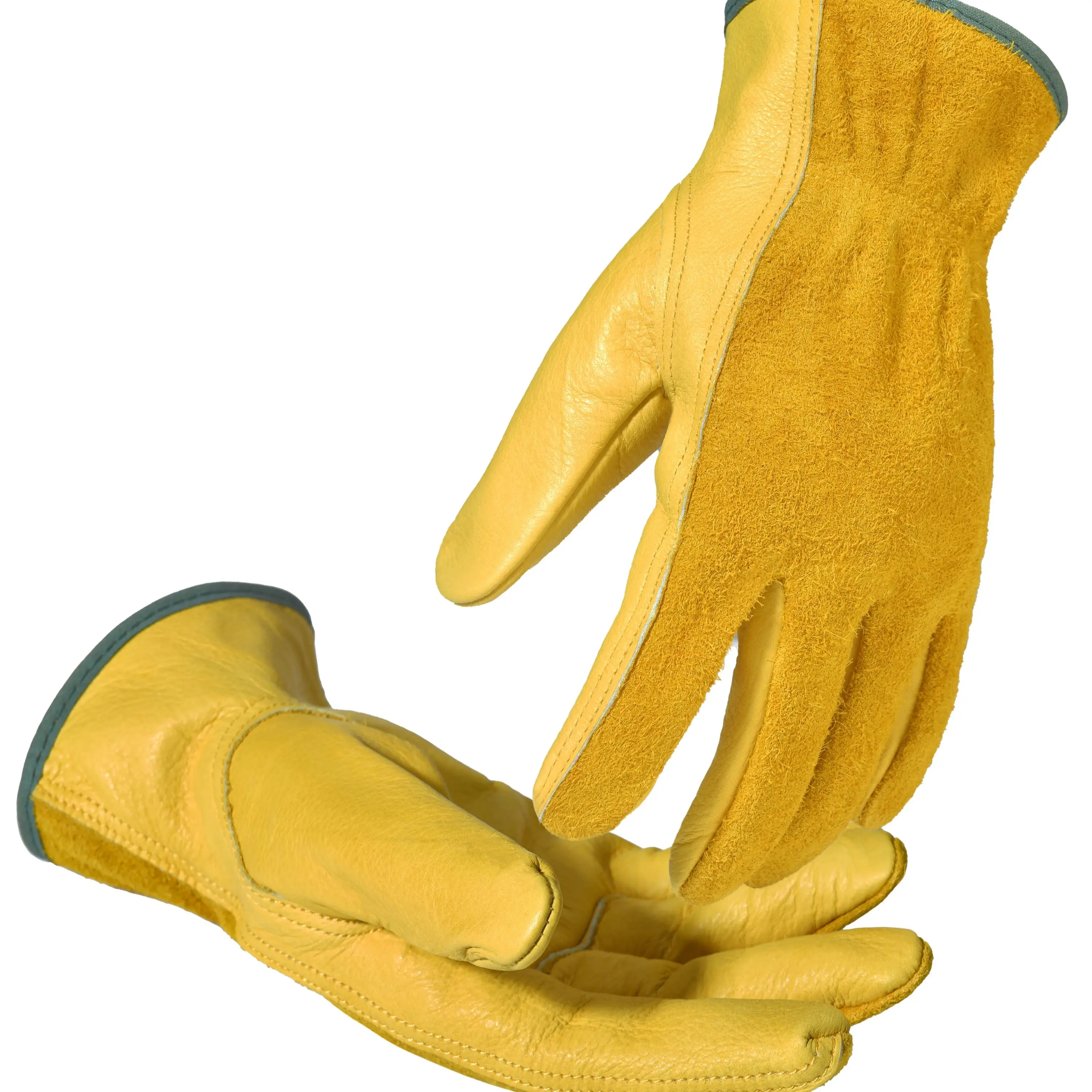 1 paio di guanti da lavoro in pelle Flex Grip, guanti da lavoro in pelle bovina resistente da polso estensibile