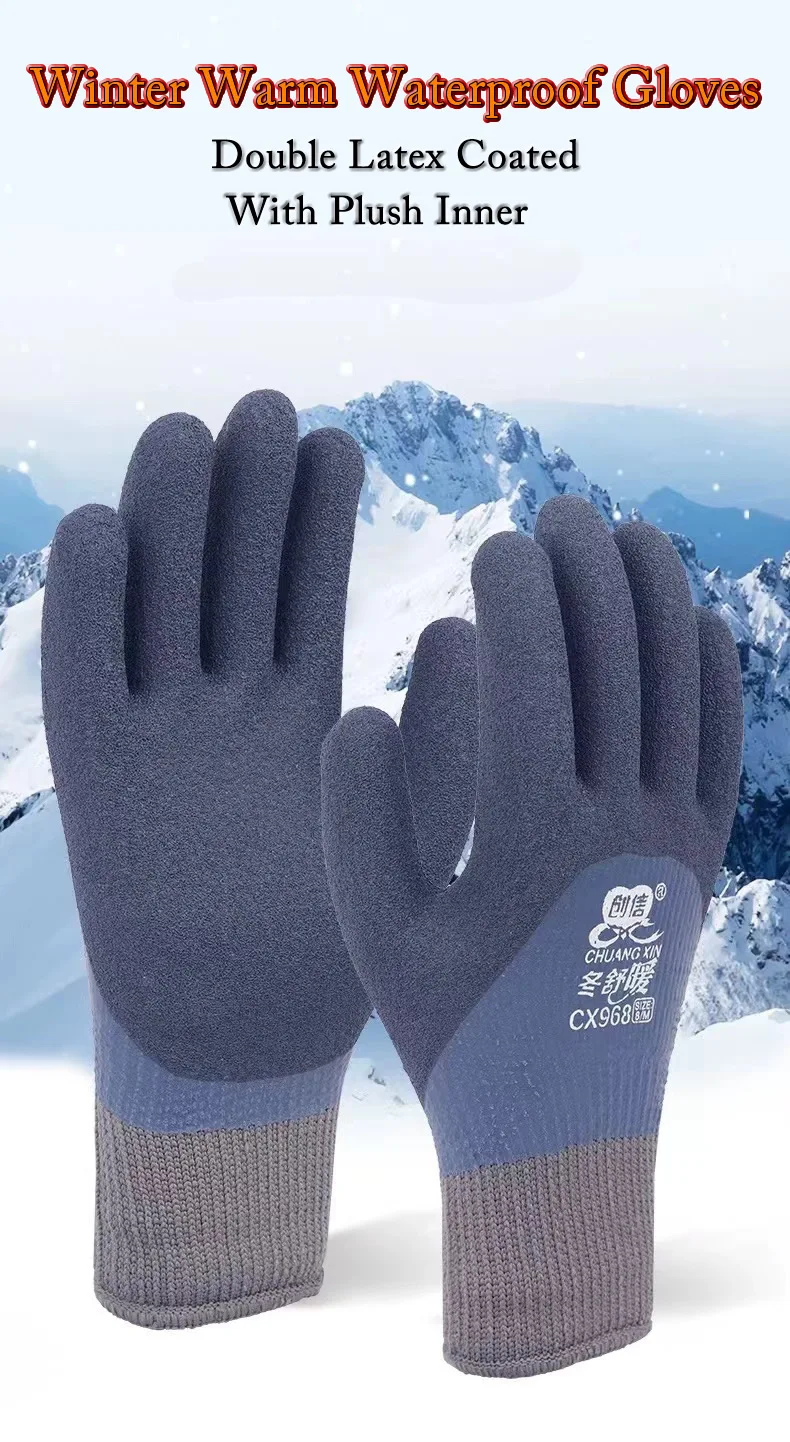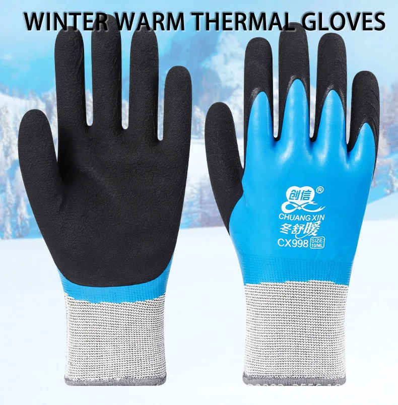 1 paio di guanti termici invernali guanto di sicurezza da lavoro impermeabile impugnatura antiscivolo guanti da giardino in gomma per la protezione delle mani del costruttore lavoratore