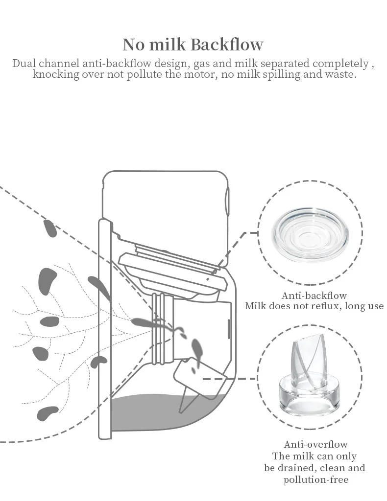 Imita il ritmo di alimentazione del bambino: all’inizio del processo di estrazione del latte, la modalità ad alta frequenza stimola delicatamente la lattazione. Quando il latte inizia a fluire, il dispositivo passa a un’aspirazione lenta e profonda, riducendo il tempo di estrazione e aumentando la secrezione di latte.