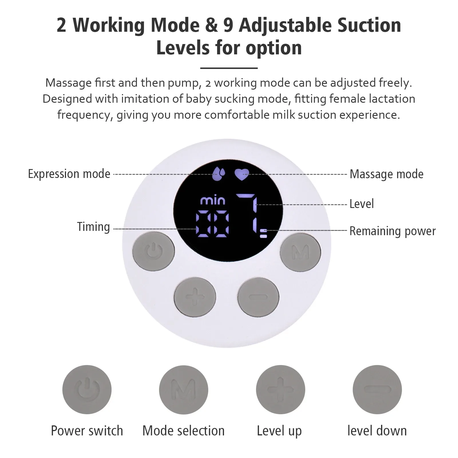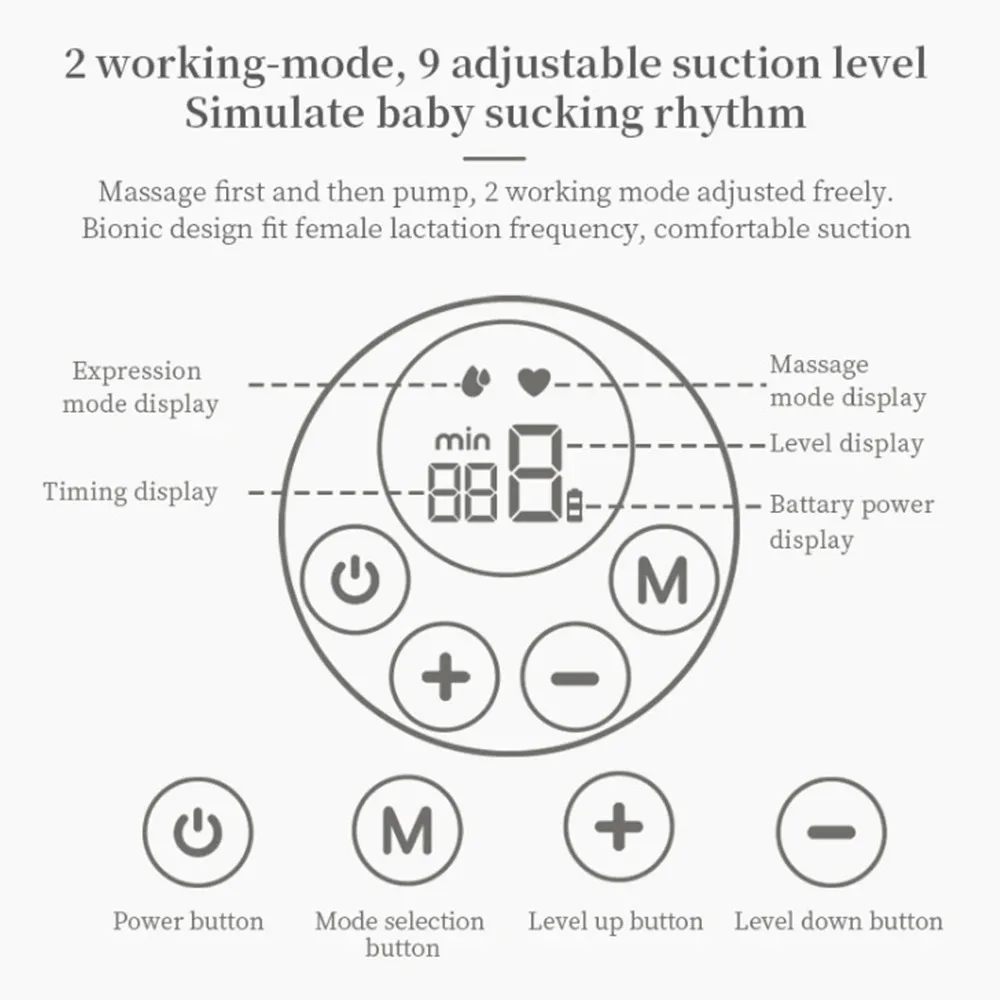 2 modalità (estrazione del latte e massaggio) e 9 livelli di aspirazione tra cui scegliere, per offrirti sempre l’esperienza di estrazione del latte più confortevole.La funzione di memoria ricorderà le impostazioni utilizzate l’ultima volta, rendendo il tiralatte più efficiente.