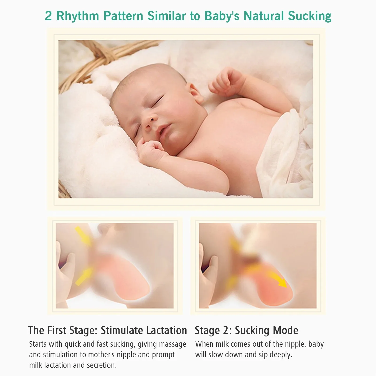 Imita il ritmo di alimentazione del bambino: all’inizio del processo di estrazione del latte, la modalità ad alta frequenza stimola delicatamente la lattazione. Quando il latte inizia a fluire, il dispositivo passa a un’aspirazione lenta e profonda, riducendo il tempo di estrazione e aumentando la secrezione di latte.