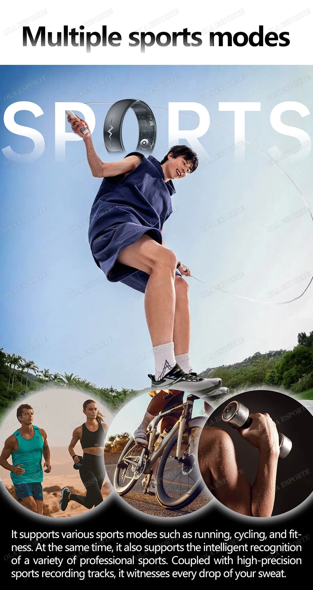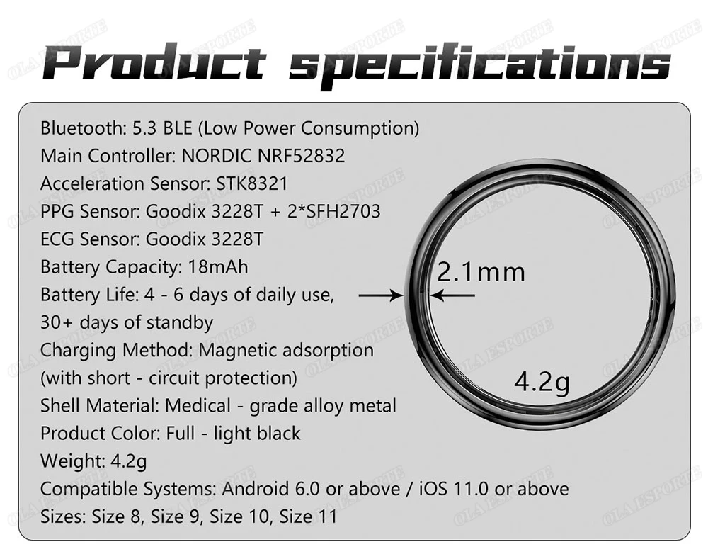 Rilevamento dell’elettrocardiogramma, analisi della salute cardiaca AI, rilevamento accurato della frequenza cardiaca, rilevamento dell’ossigeno nel sangue reale, rilevamento della temperatura corporea, rilevamento della pressione sanguigna, monitoraggio del sonno, incluso monitoraggio della salute 24 ore su 24 e rilevamento attivo dell’APP, dati sulle informazioni sull’attività, conteggio dei passi/calorie/distanza, corsa, ciclismo, corda per saltare, fitness e altre modalità multi-esercizio.
