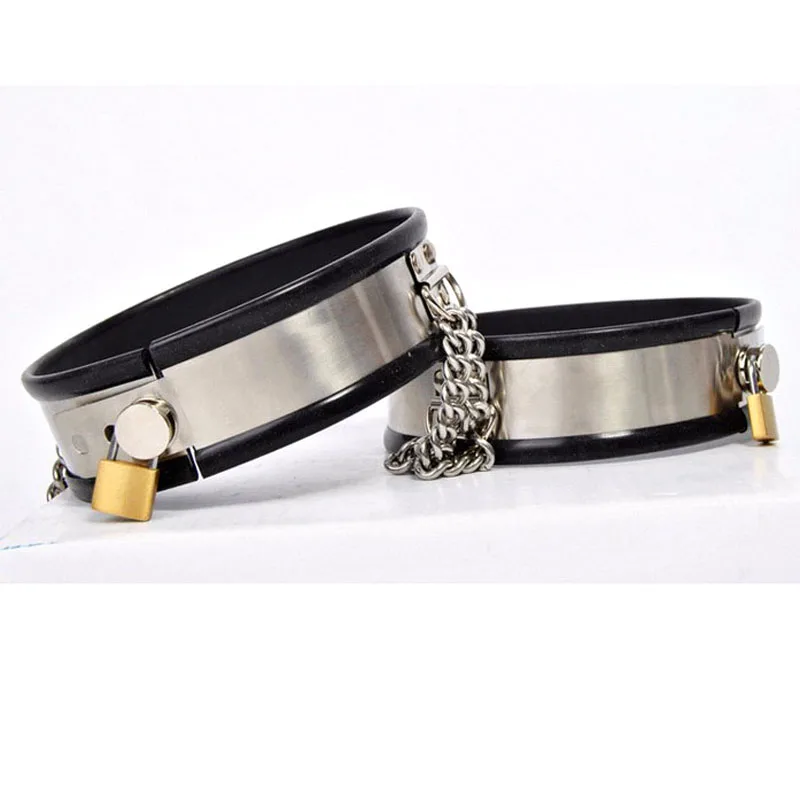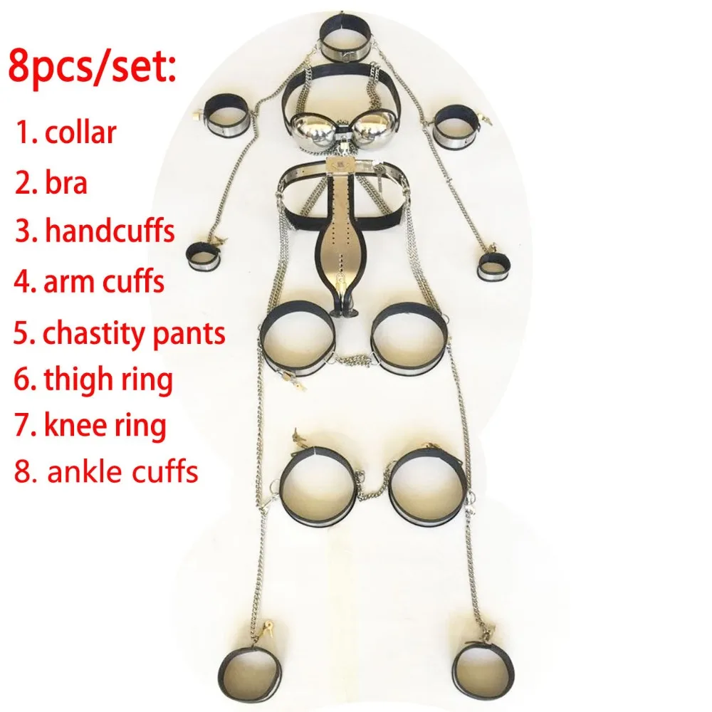 Recensisci per primo “8 pz/set Cintura di Castità Maschile In Acciaio Inox Bondage Kit Gamba Mano Colletto Polsini Uomini Dispositivo di Castità Del Sesso Cazzo Gabbia di Metallo prodotti”
