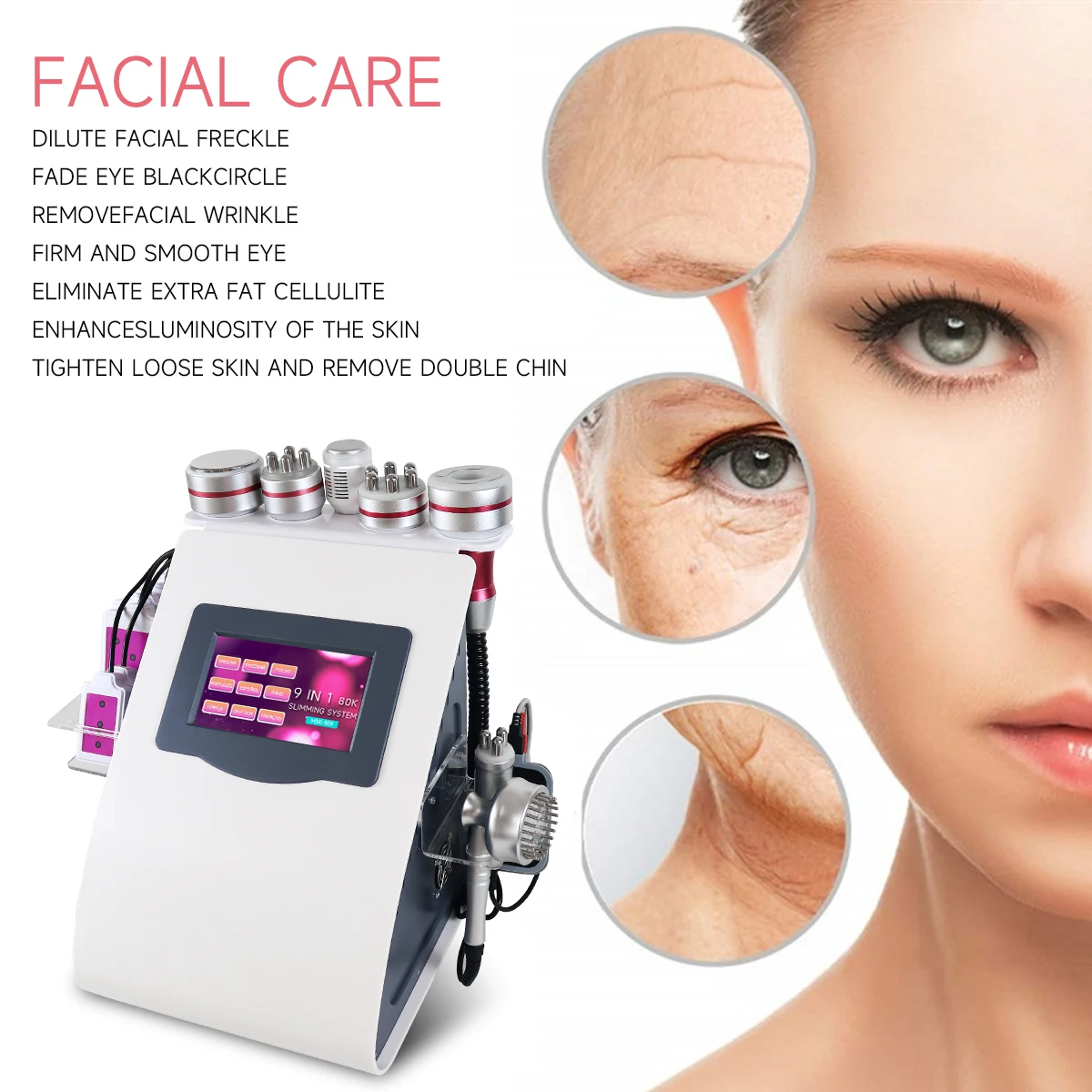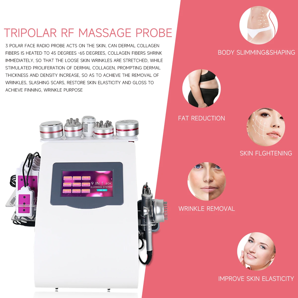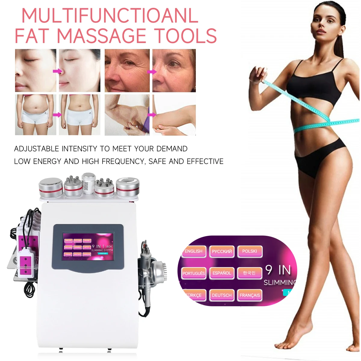9 in 1 nuovo 80K cavitazione vuoto massaggio dimagrante radiofrequenza esplosiva macchina di bellezza RF dispositivo di serraggio per il sollevamento della pelle del viso