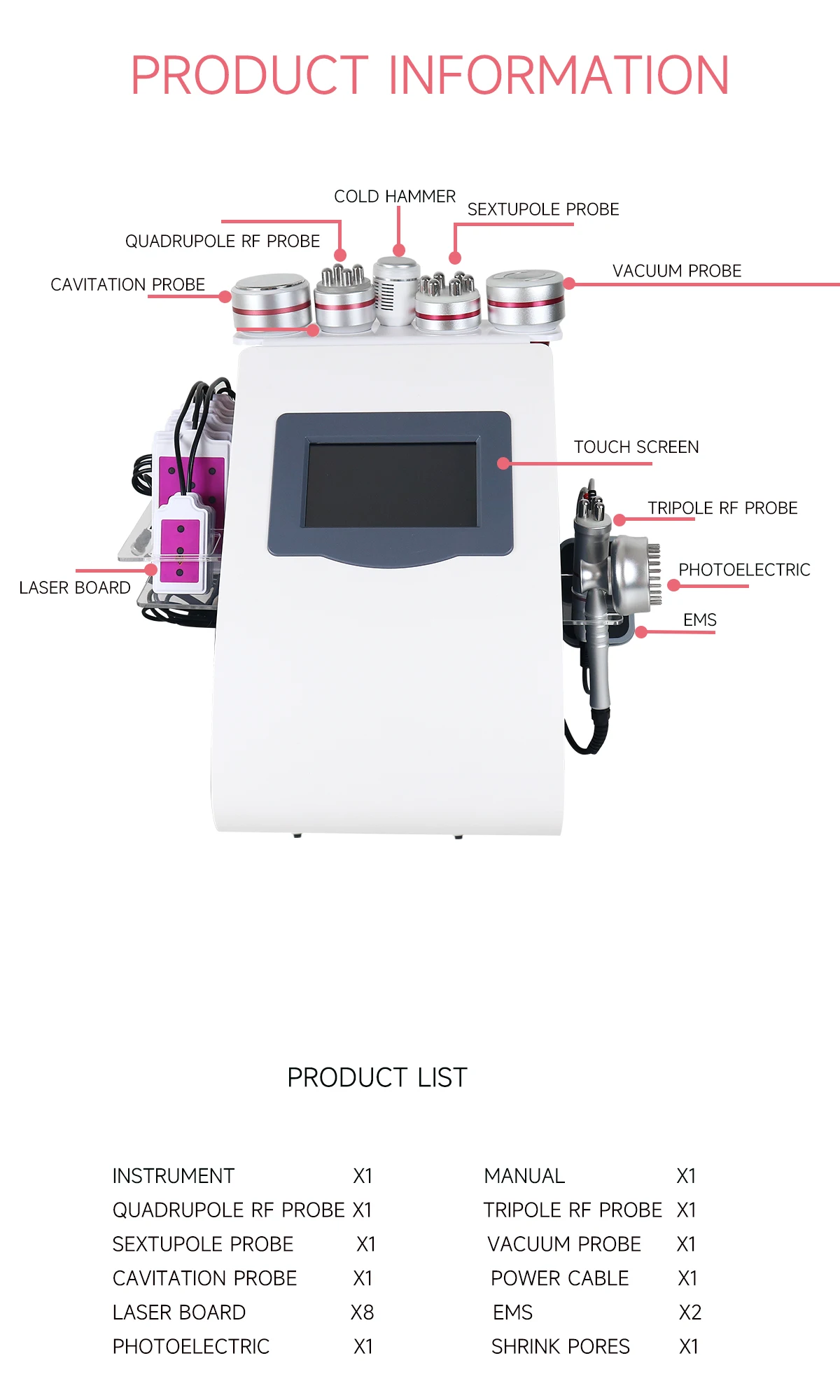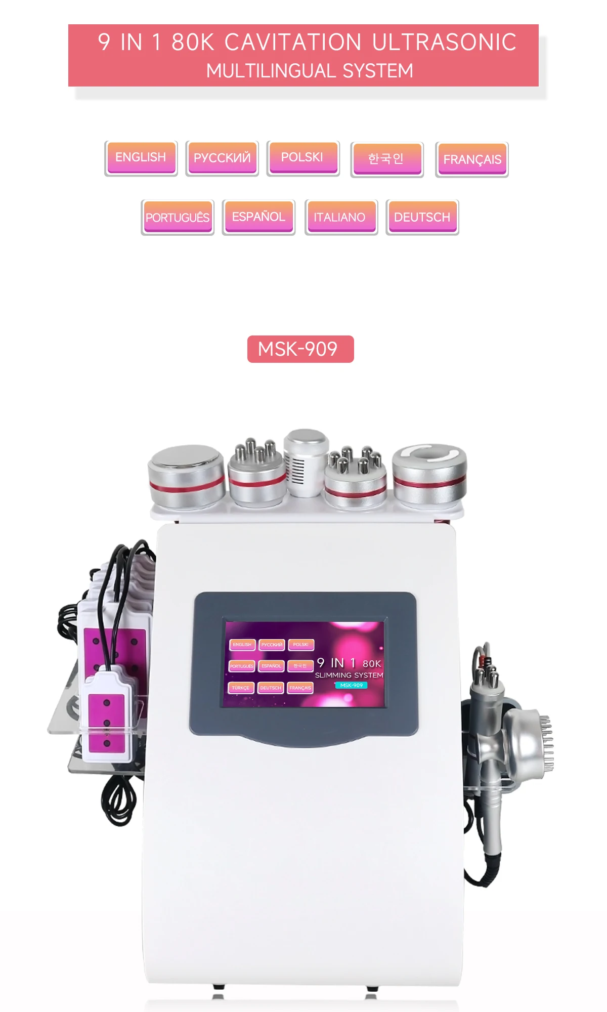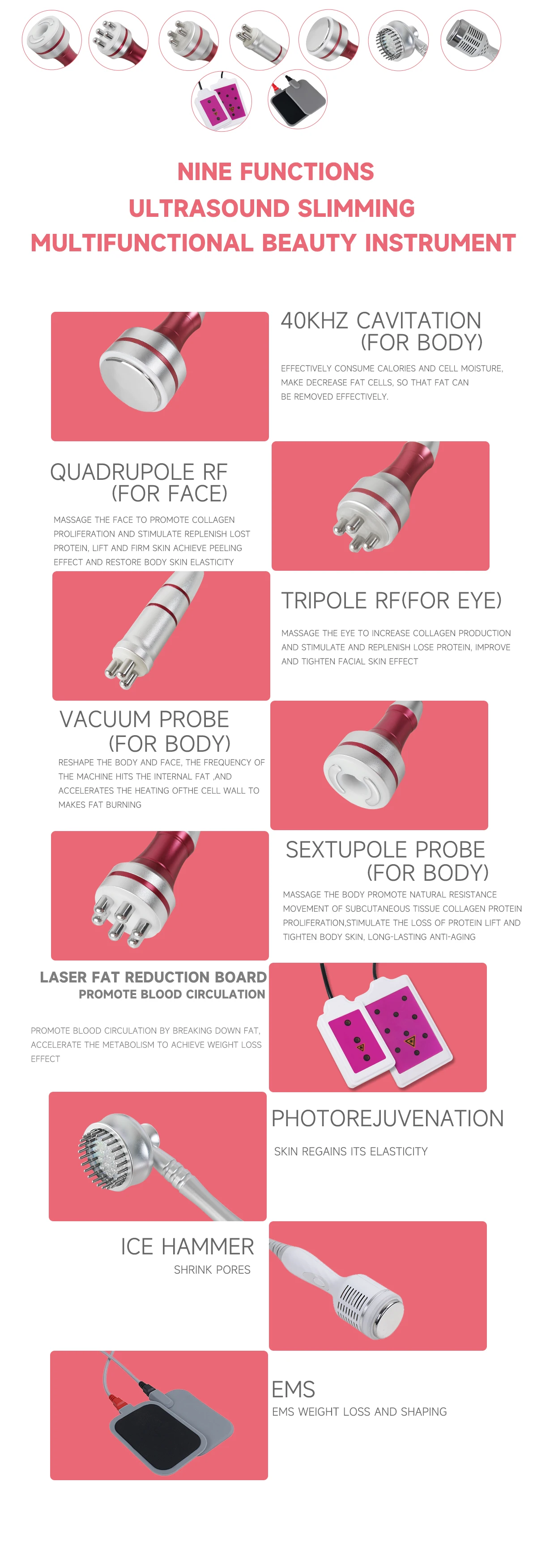 9 in 1 nuovo 80K cavitazione vuoto massaggio dimagrante radiofrequenza esplosiva macchina di bellezza RF dispositivo di serraggio per il sollevamento della pelle del viso