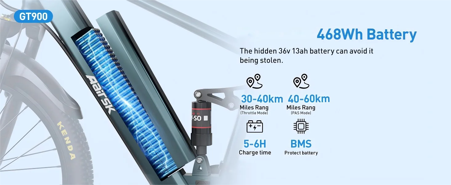 Aairsk GT900 Bici Elettrica da Montagna per Adulti 250W 36V 13Ah, Bicicletta Elettrica Fuoristrada con Pneumatici 26*1.95″, Bici Elettrica per Pendolarismo Outdoor