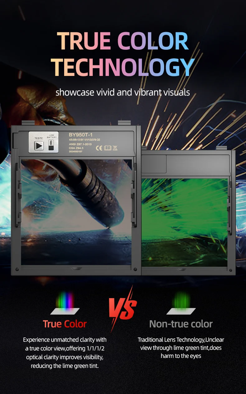 2.Vista a colori reali: sperimenta una chiarezza senza precedenti e viste a colori reali con chiarezza ottica 1/1/1/2.La protezione UV/IR fino alla tonalità DIN16 garantisce che i tuoi occhi siano sempre protetti.