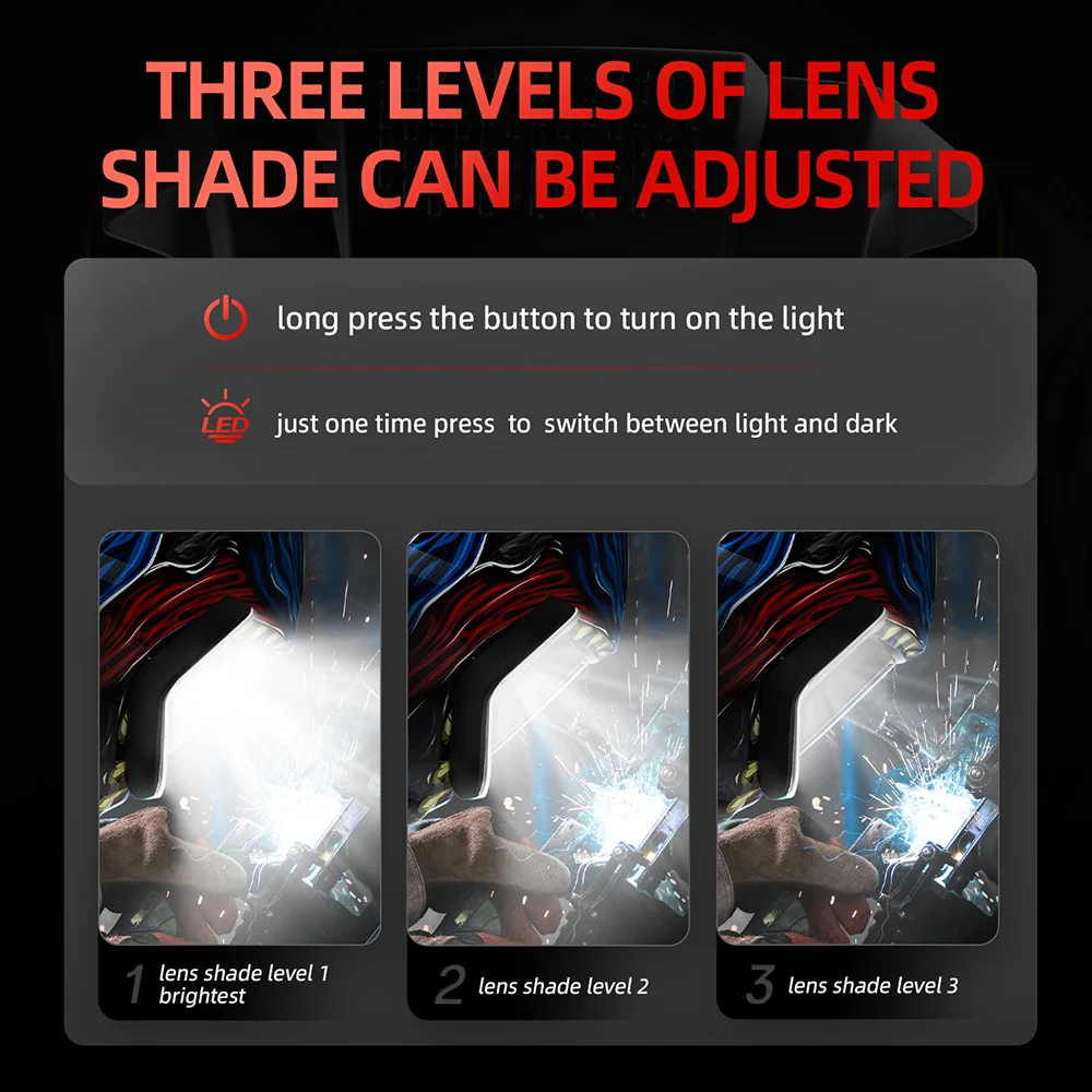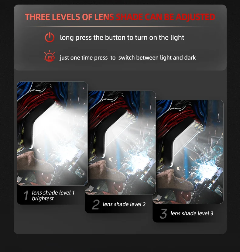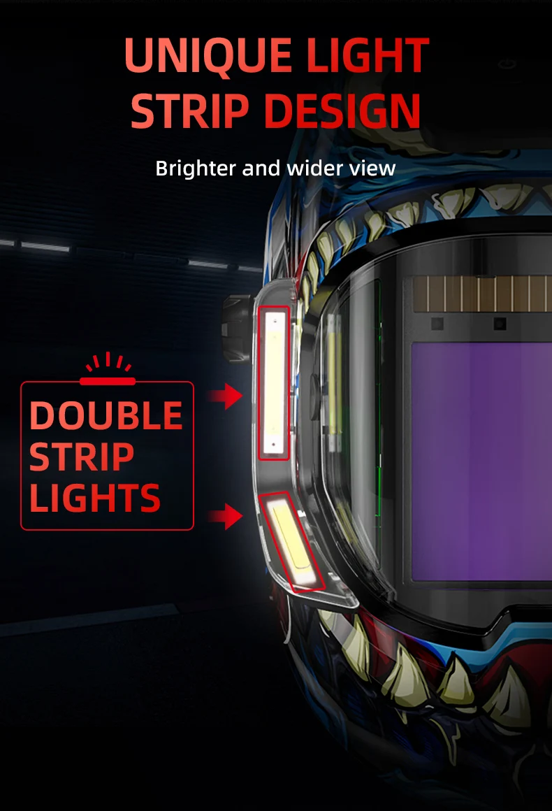 4. Oscuramento automatico: dotato di 4 sensori premium, il casco passa dal chiaro allo scuro in un impressionante 1/25000 secondi, proteggendo gli occhi dai raggi dannosi durante le operazioni di saldatura.