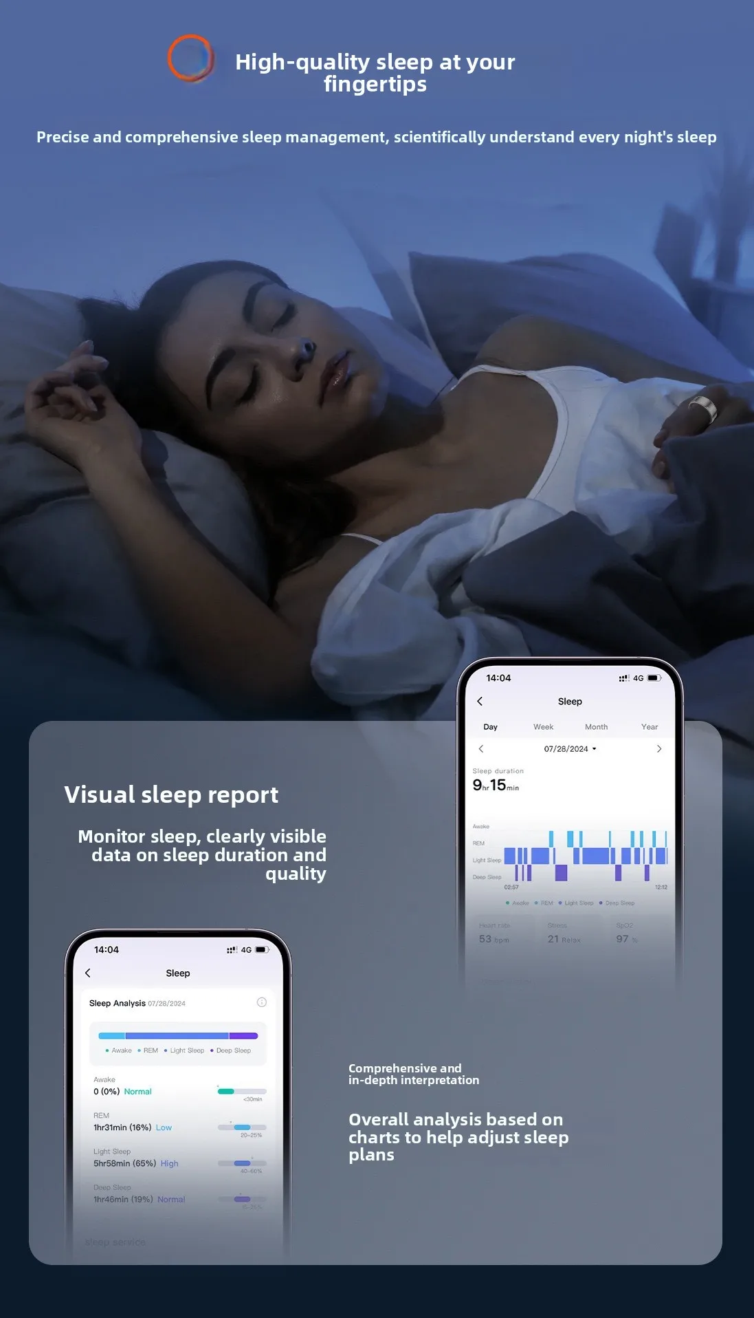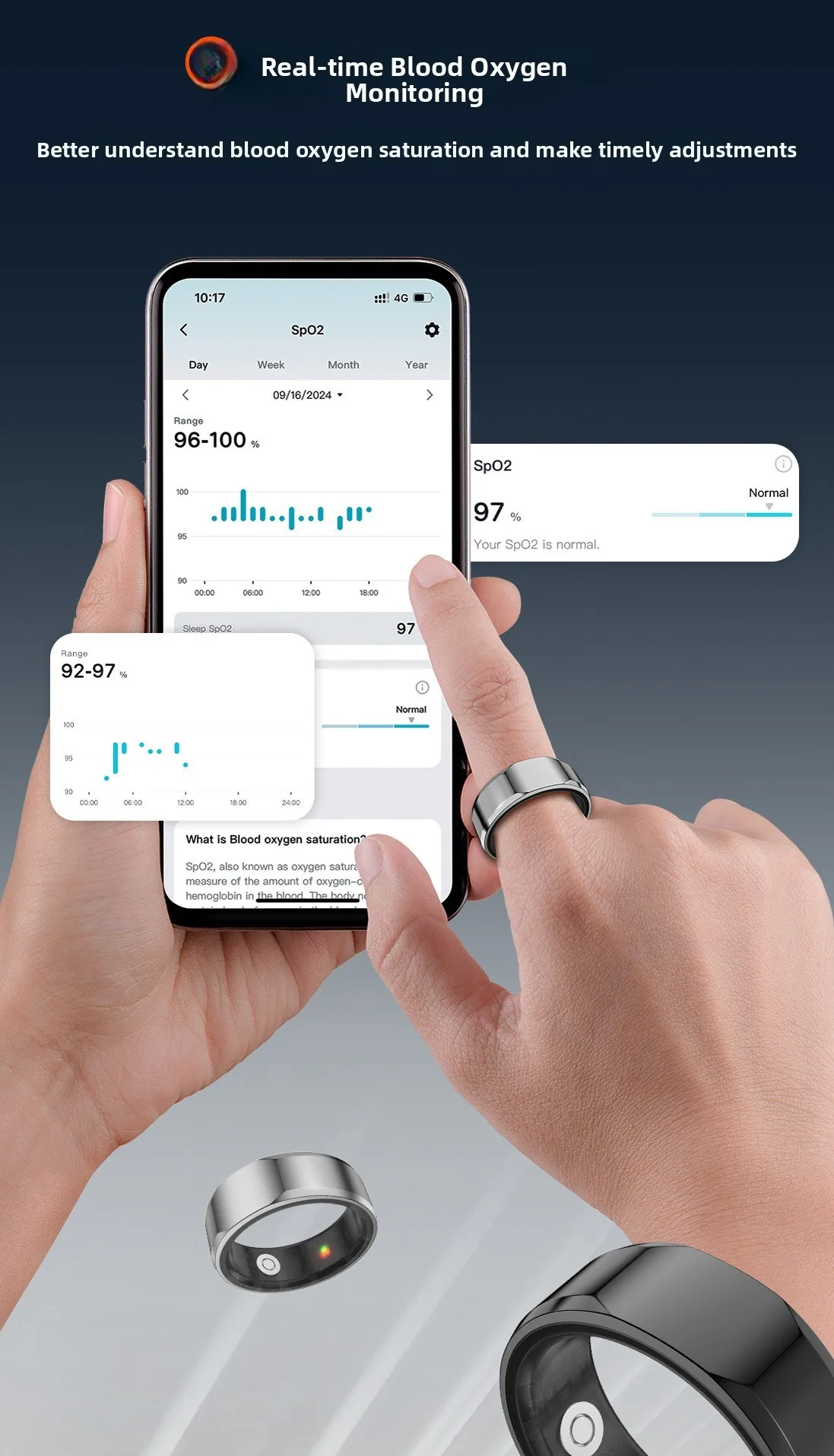 Con la sua funzione di misurazione del livello di ossigeno nel sangue, questo anello intelligente ti garantisce di mantenere livelli ottimali di salute e forma fisica.