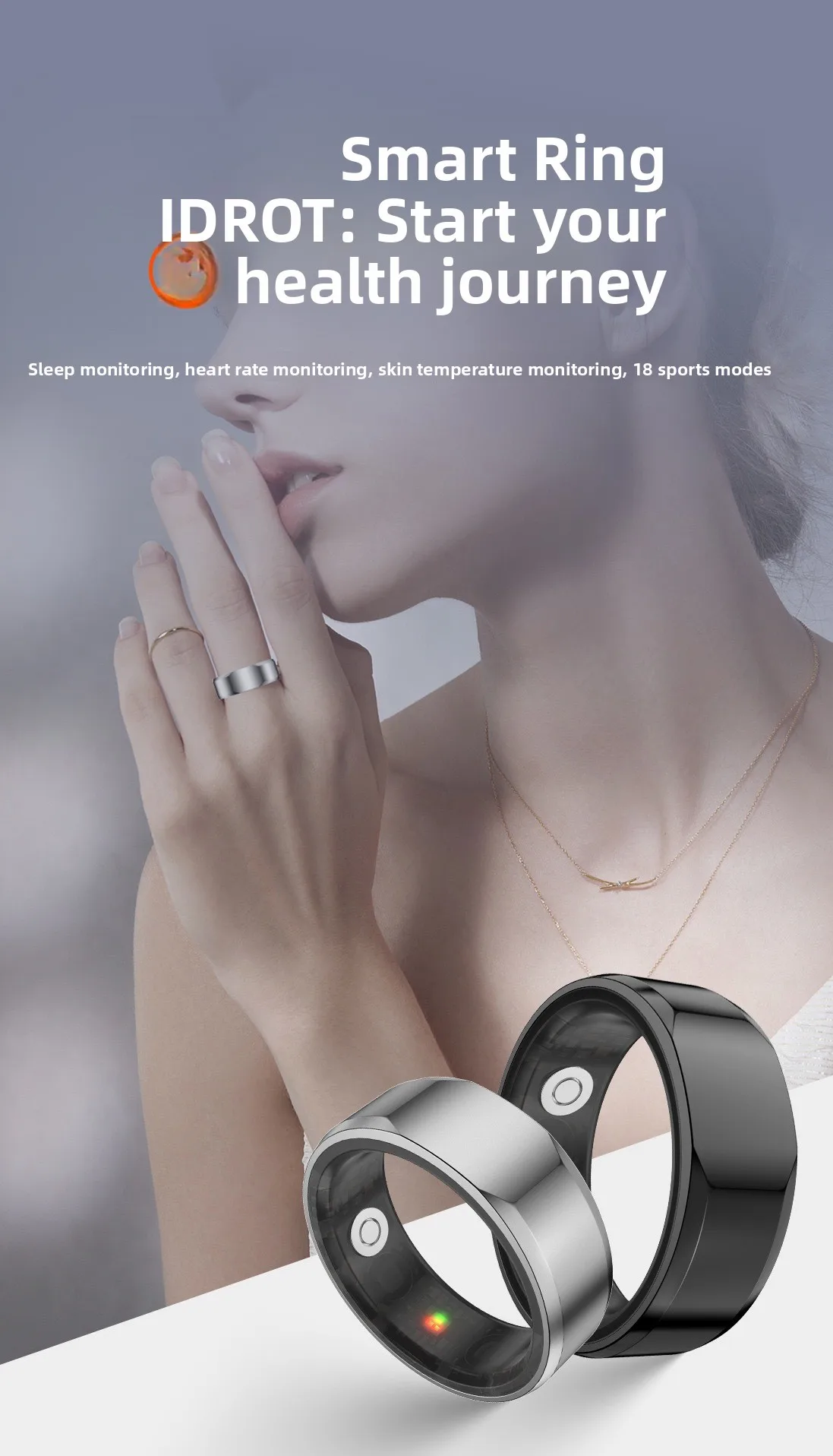Anello Intelligente IDR01 con Controllo Gestuale, 18 Modalità Sportive, Monitoraggio Frequenza Cardiaca, Ossigeno nel Sangue, Contapassi, Temperatura Cutanea, Impermeabile 5ATM