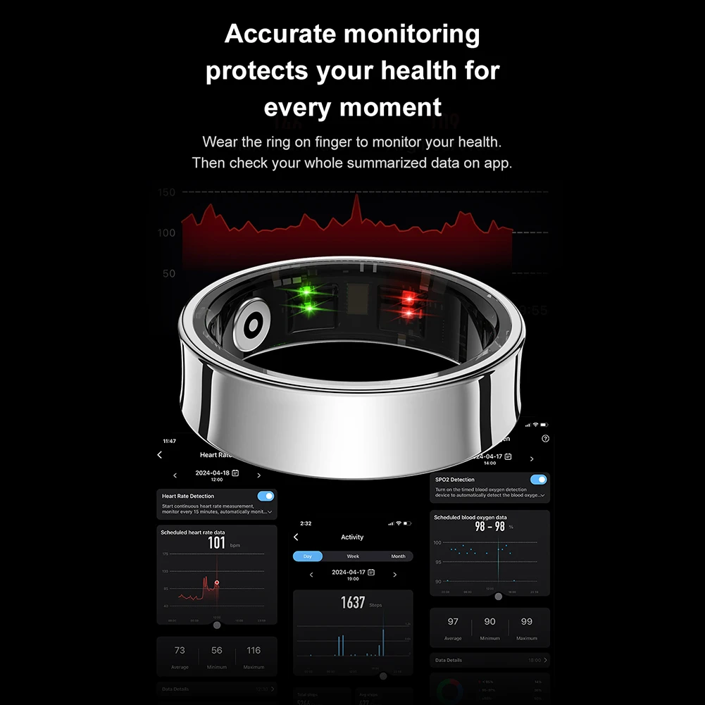 Anello Intelligente R09 Impermeabile, Fitness Tracker con Monitoraggio Frequenza Cardiaca, Ossigeno nel Sangue e Sonno, con Custodia di Ricarica per Telefoni Xiaomi e Samsung