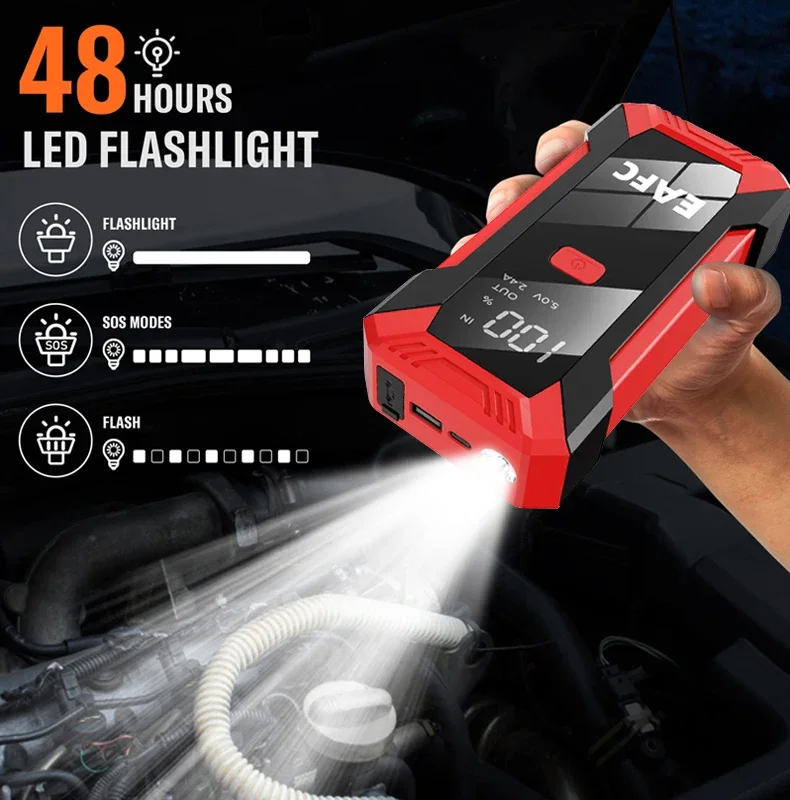 Luce di emergenza Le luci LED dell’avviatore di emergenza includono tre modalità (Normale, Strobo, SOS), che possono essere utilizzate in diverse emergenze.
