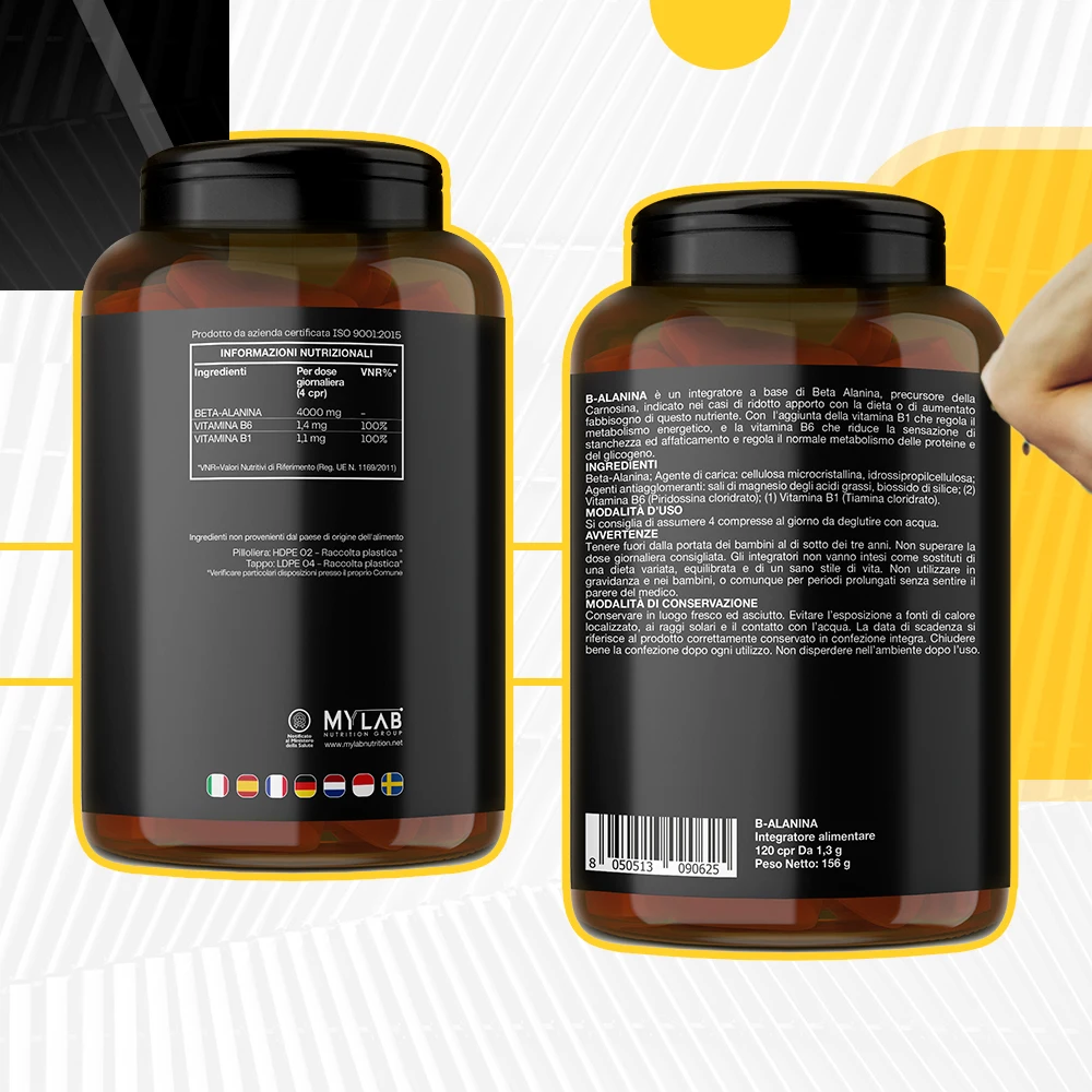 Ogni compressa contiene un’elevata concentrazione di B-Alanina (1000 mg), questo permette di ridurre il quantitativo di compresse ingerite ed aumentare le capacità di assorbimento.Â