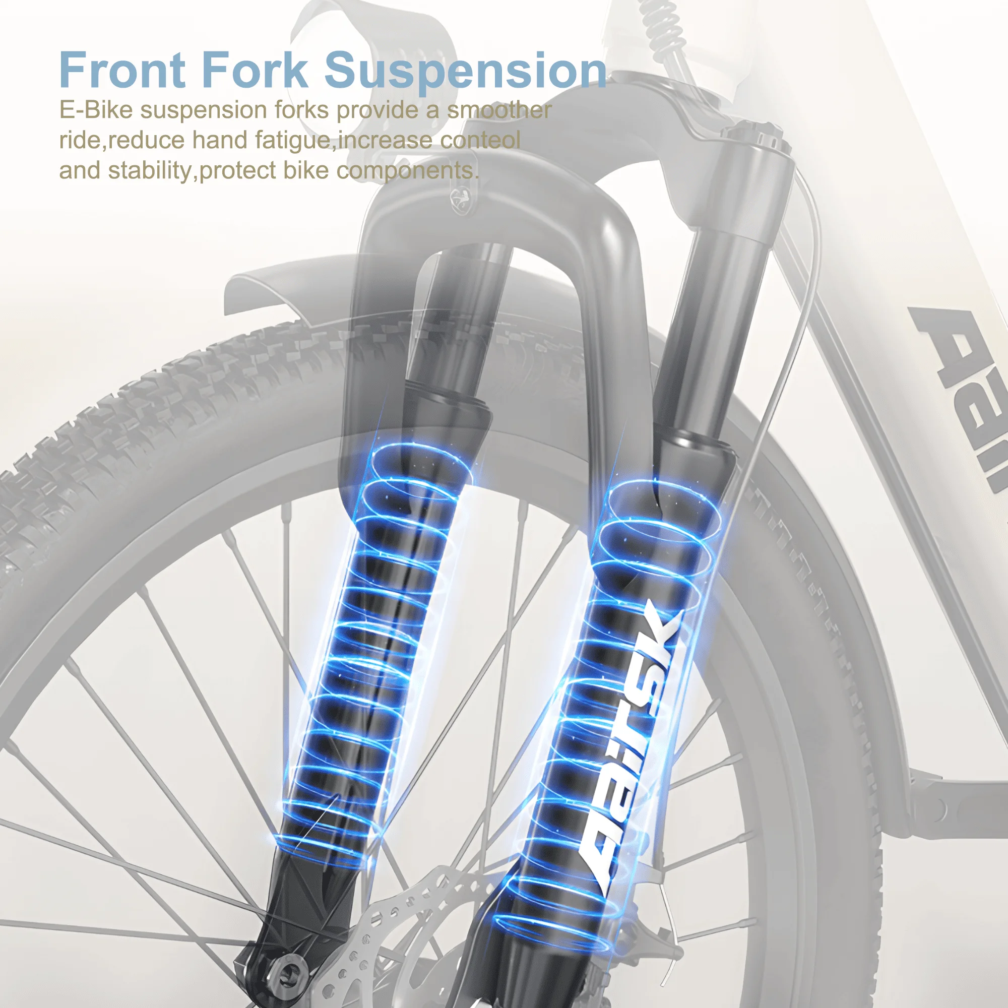 Bici elettrica Aairsk SU7 da 24″, portata massima di 65 km e 25 km/h di potenza da 250 W, sospensione anteriore, modalità 7 velocità e boost, bici elettrica da città per adulti
