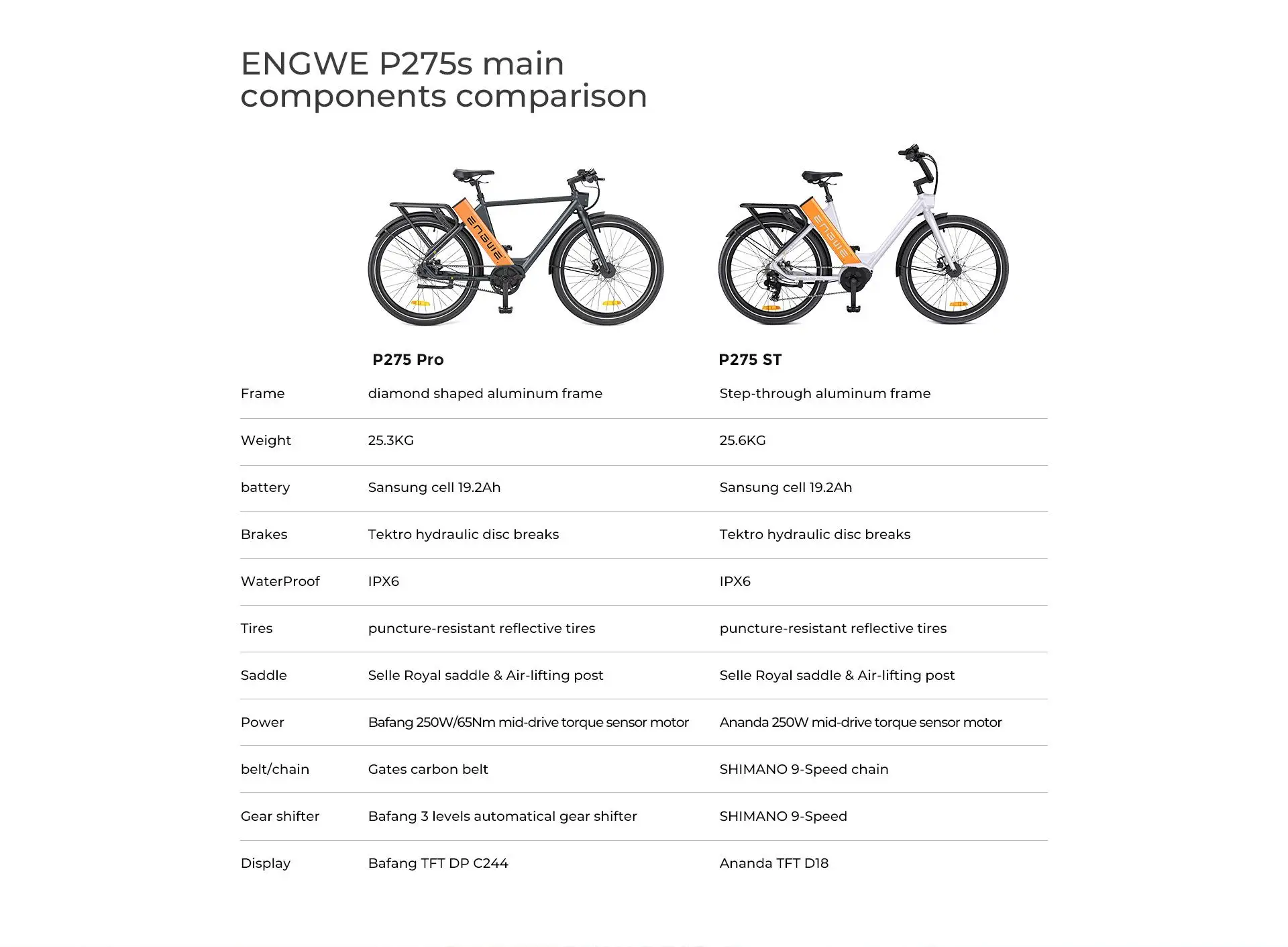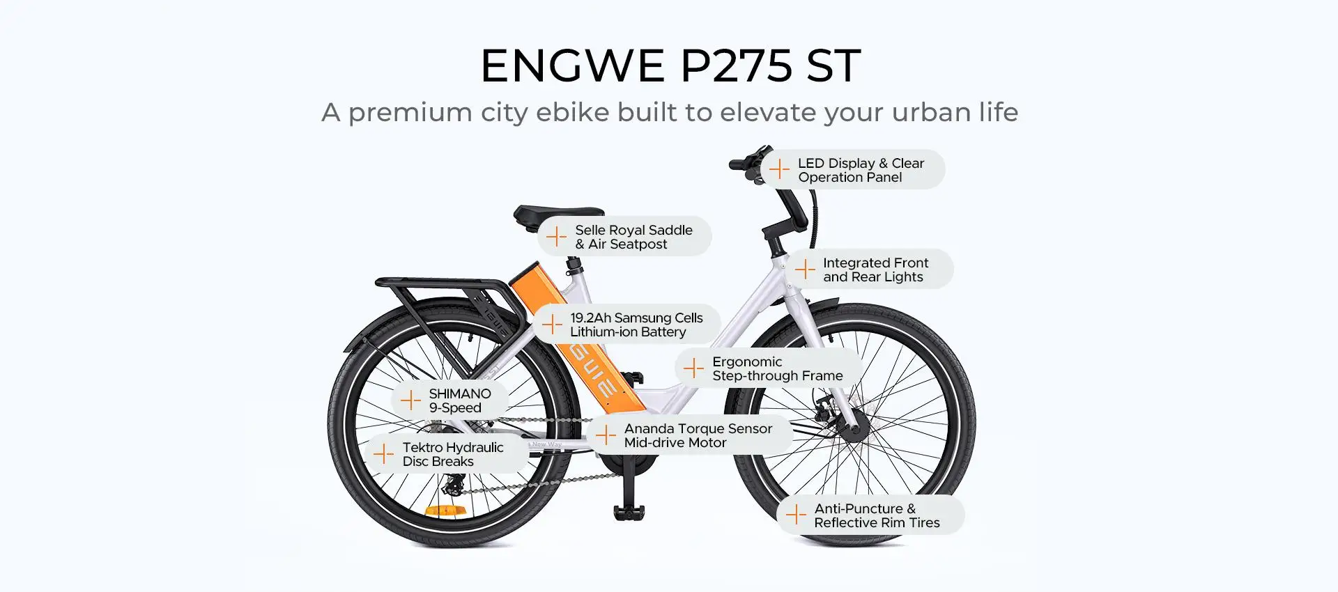 Bicicletta elettrica ENGWE P275 ST 250 W 260 km con motore brushless centrale Ananda e batteria SAMSUNG 36V 19,2Ah.
