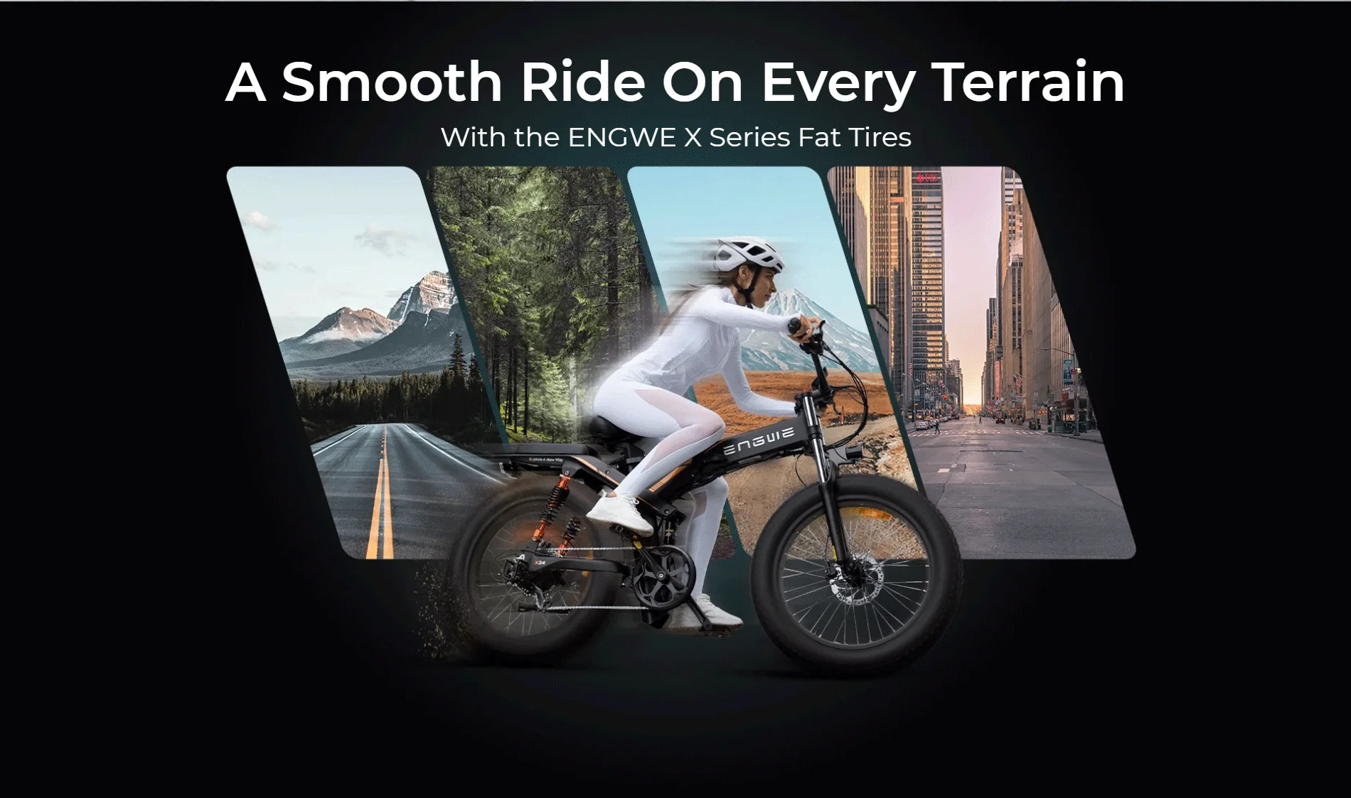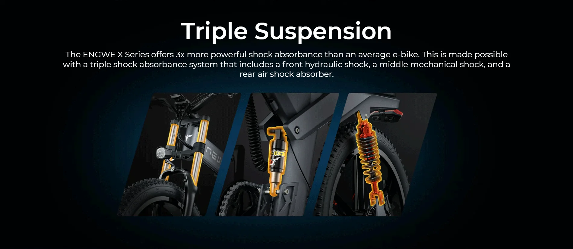 Engwe X26 Bici elettrica Doppio motore Pneumatici grassi da 26 pollici Freni a disco idraulici pieghevoli a tripla sospensione
