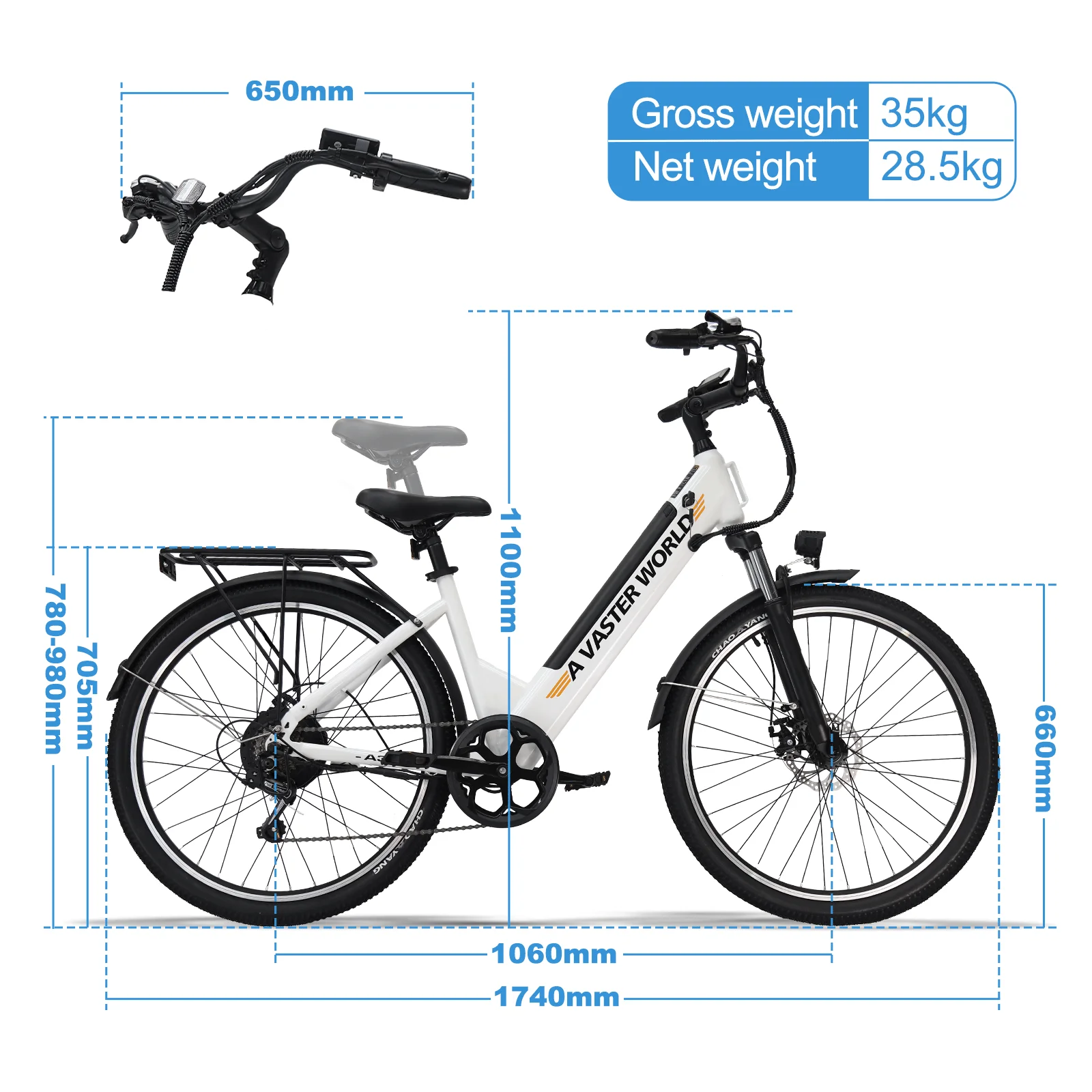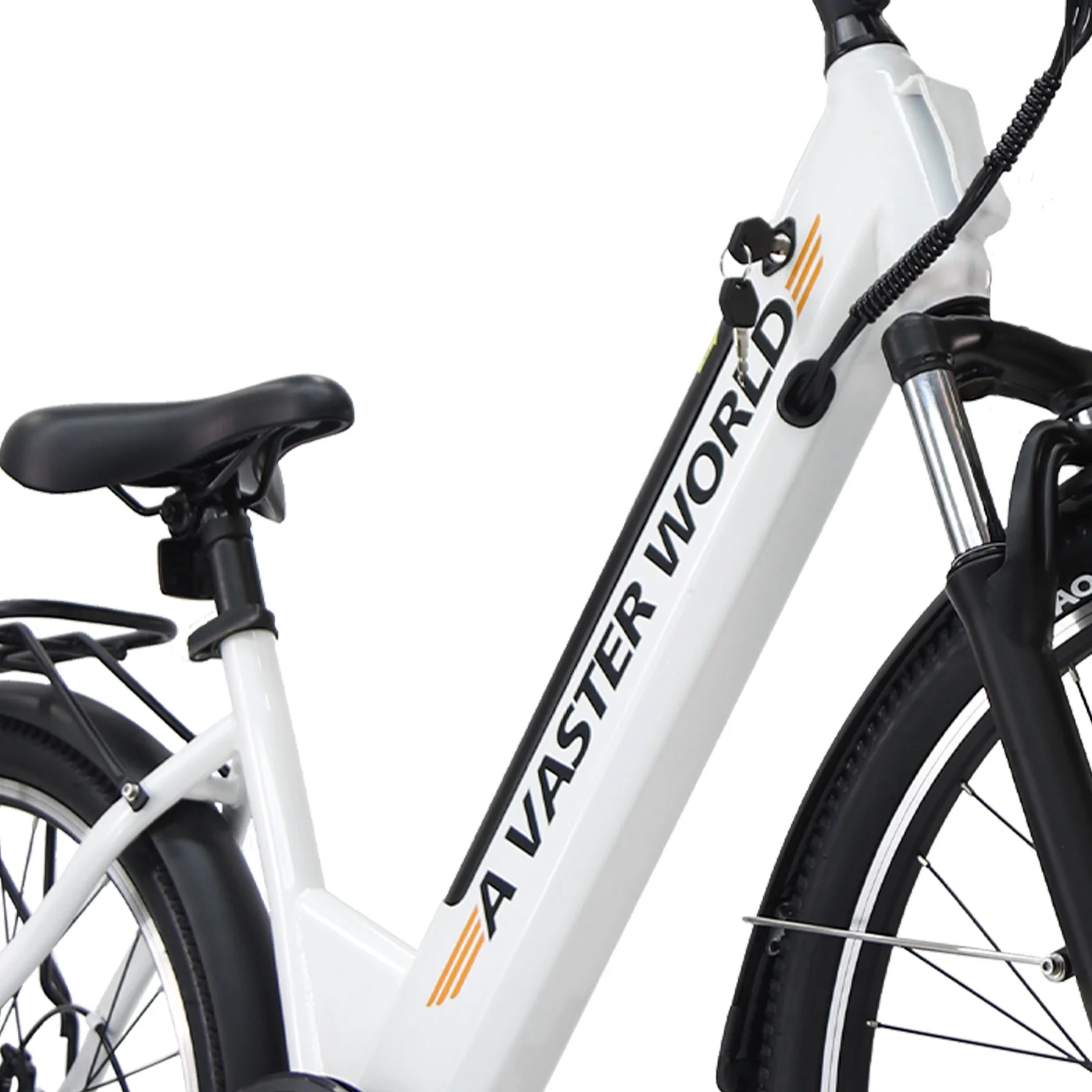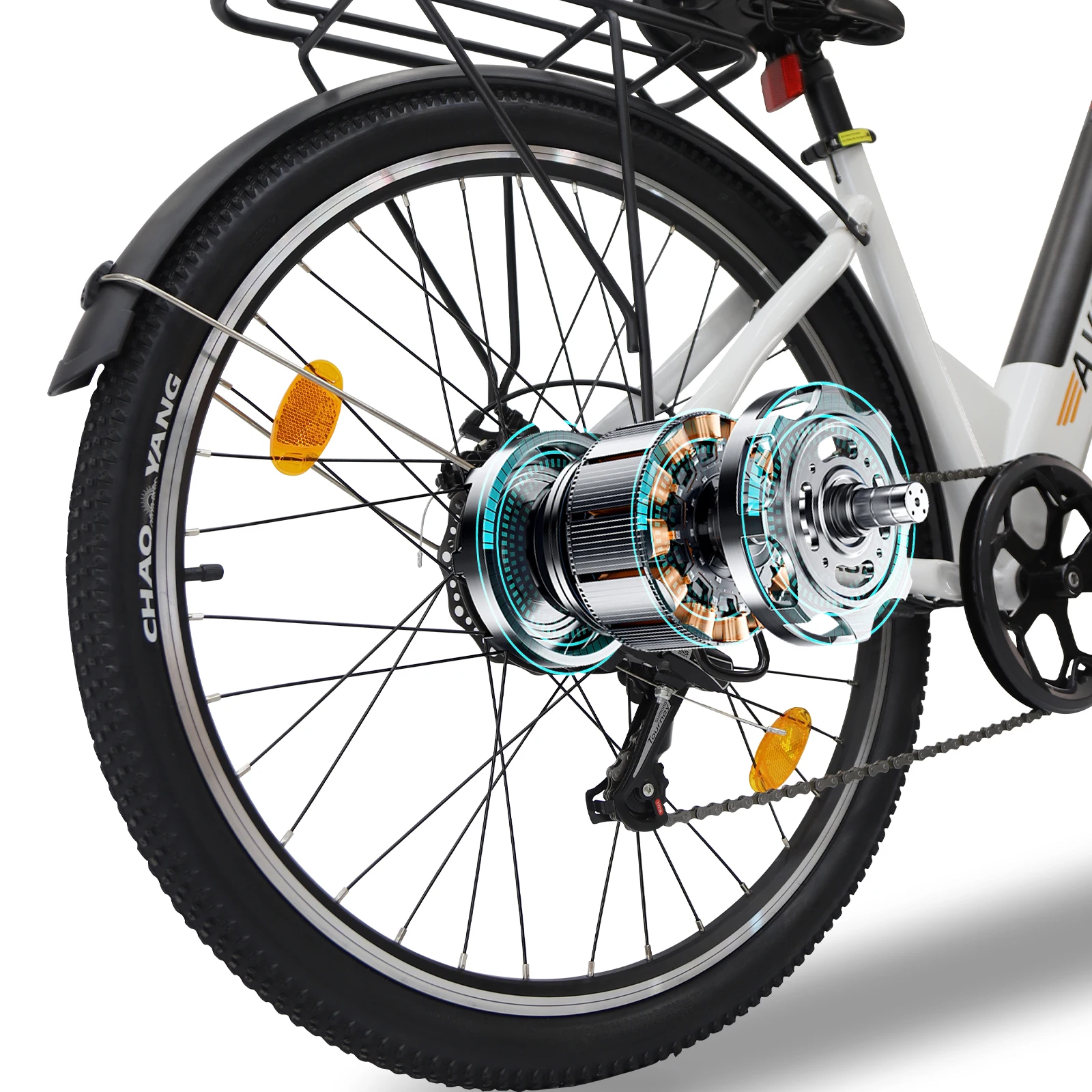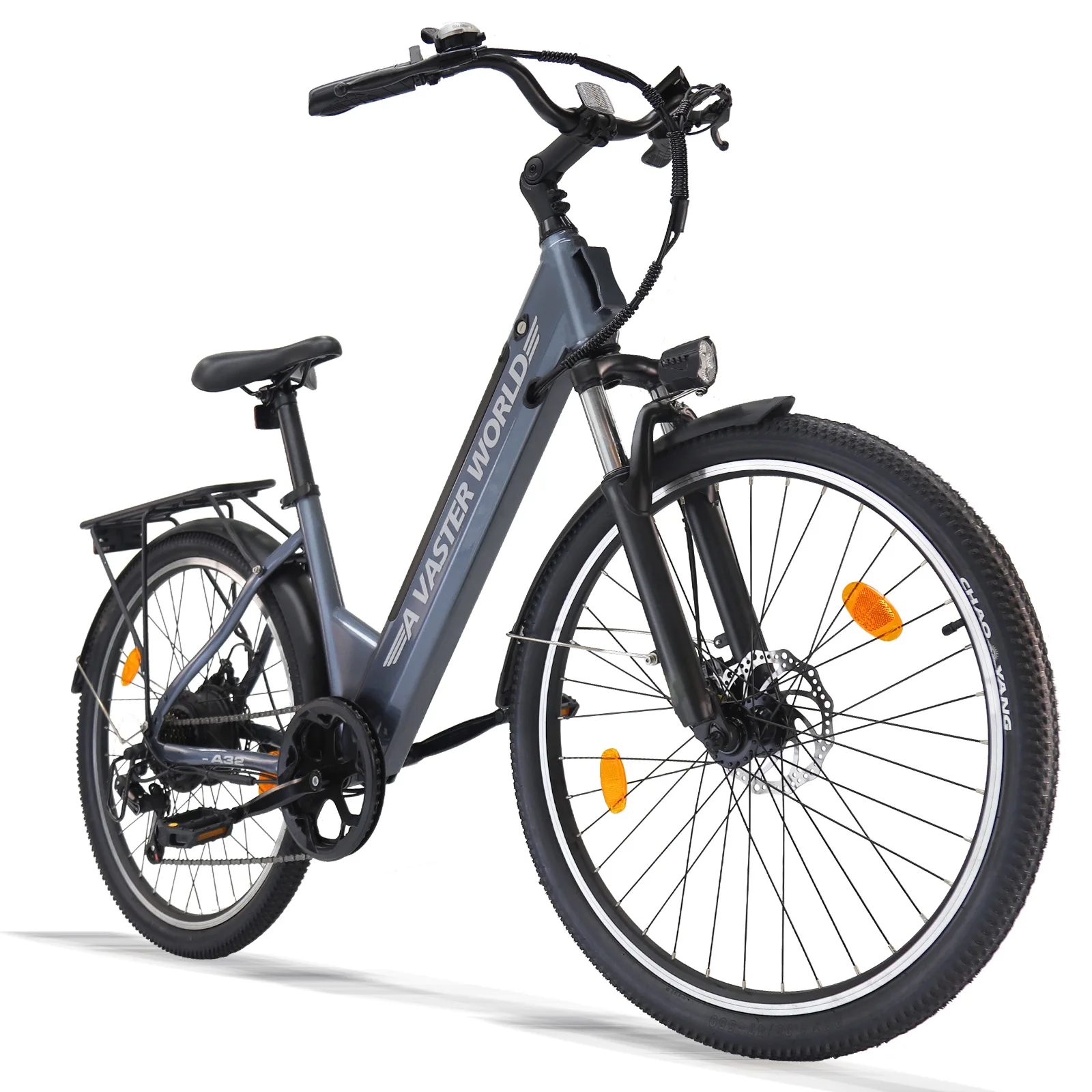 Bicicletta elettrica da 26 pollici, dotata di batteria da 48 V 10,4 Ah e motore da 500 W. Raggiunge velocità fino a 25 km/h con un intervallo di 35-50 km.