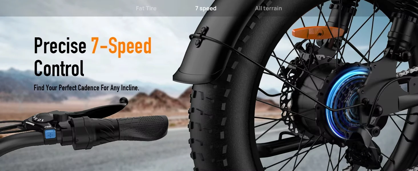 【Pneumatici Fat da 20″ + Doppi Ammortizzatori】– La forcella anteriore assorbe gli urti della ruota anteriore mentre la sospensione centrale stabilizza il nucleo del telaio: un approccio doppio che porta l’esperienza di guida al massimo livello.Gli pneumatici larghi offrono una stabilità solida come una roccia su ghiaccio, sabbia e terreni montani, rendendo questa e-bike per adulti inarrestabile su paesaggi accidentati.