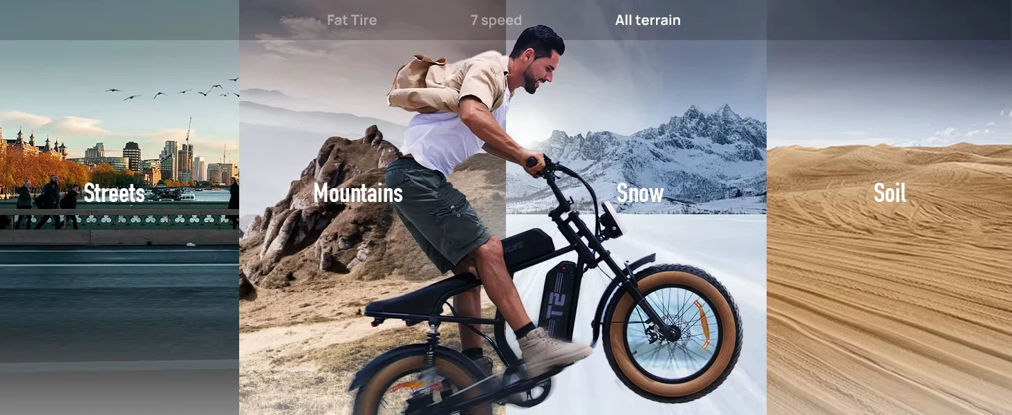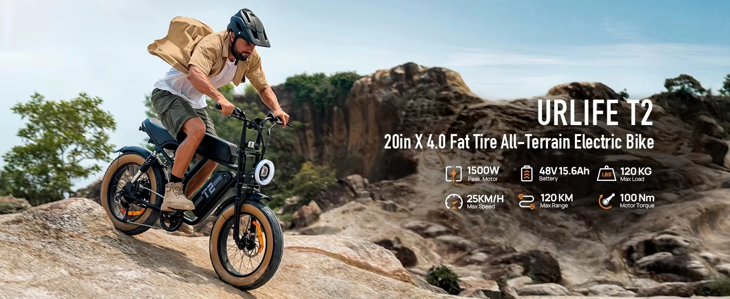 Applicazione della Bicicletta Elettrica Fuoristrada T2 in Ambienti Montuosi e Rocciosi all’Aperto.La bici elettrica, dotata di pneumatici larghi 20×4,0 pollici, affronta terreni accidentati.Dotato di un motore da 1500W di picco e una batteria da 48V 15,6Ah, raggiunge una velocità massima di 45 km/h, un’autonomia fino a 120 km, una capacità di carico di 120 kg e una coppia di 100 N.m.Questa bici elettrica ad alte prestazioni è progettata specificamente per il fuoristrada e i terreni impegnativi.