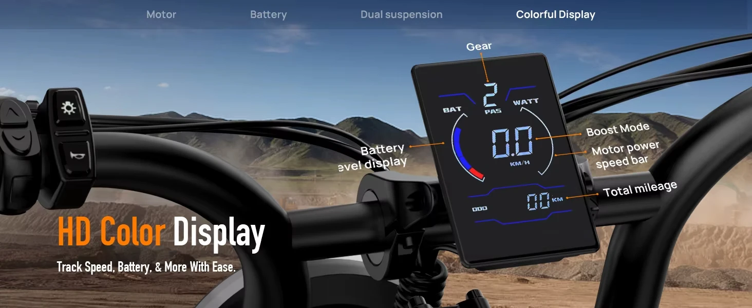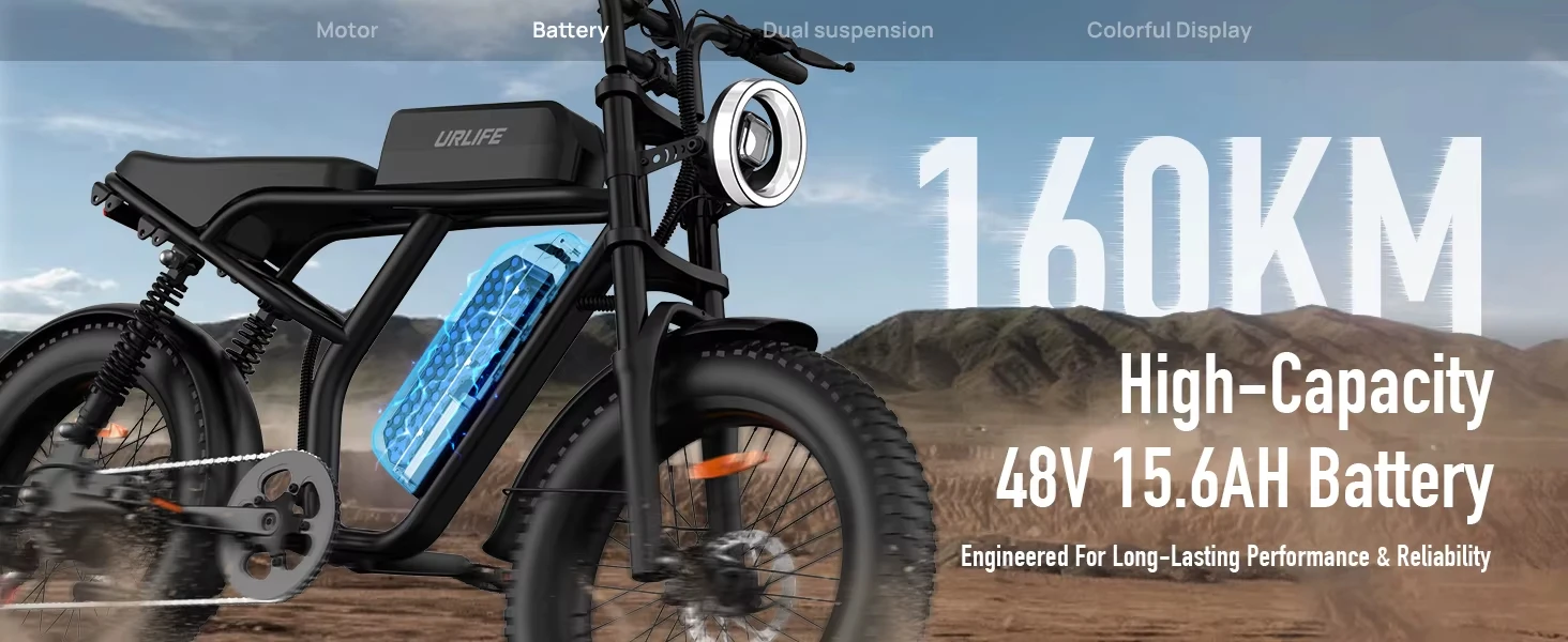 【Batteria a lungo raggio da 48 V 15,6 Ah】—La batteria da 15,6 Ah offre un’autonomia fino a 60 km con una singola carica in modalità assistita!Perfettamente adatto per avventure in e-bike—dite addio all’ansia da ricarica durante i tragitti settimanali o le gite in spiaggia o in montagna.