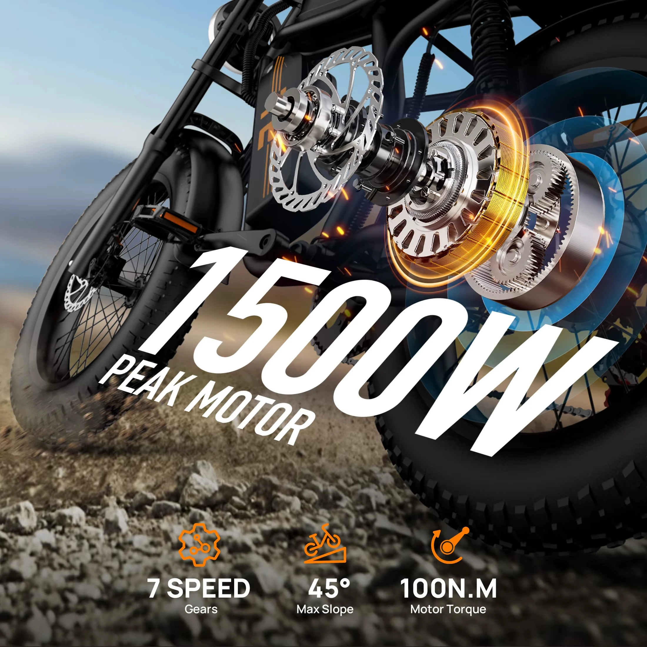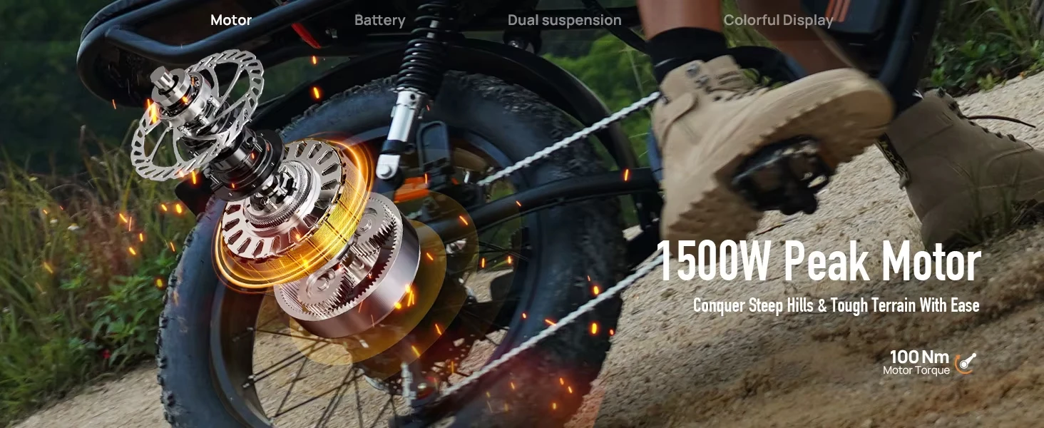 【Motore da 1500 picchi】– La tua rivoluzione definitiva per le bici elettriche!Domina gli spostamenti urbani e conquista 30° colline ripide come mai prima d’ora.