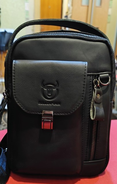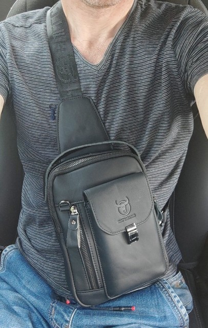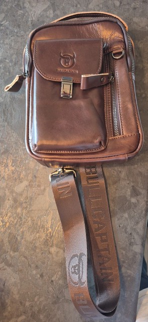 15 recensioni per BULLCAPTAIN Borsa da petto in vera pelle da uomo Casual Retro Borsa per cellulare da 7,9 pollici Borsa a tracolla antifurto multifunzionale