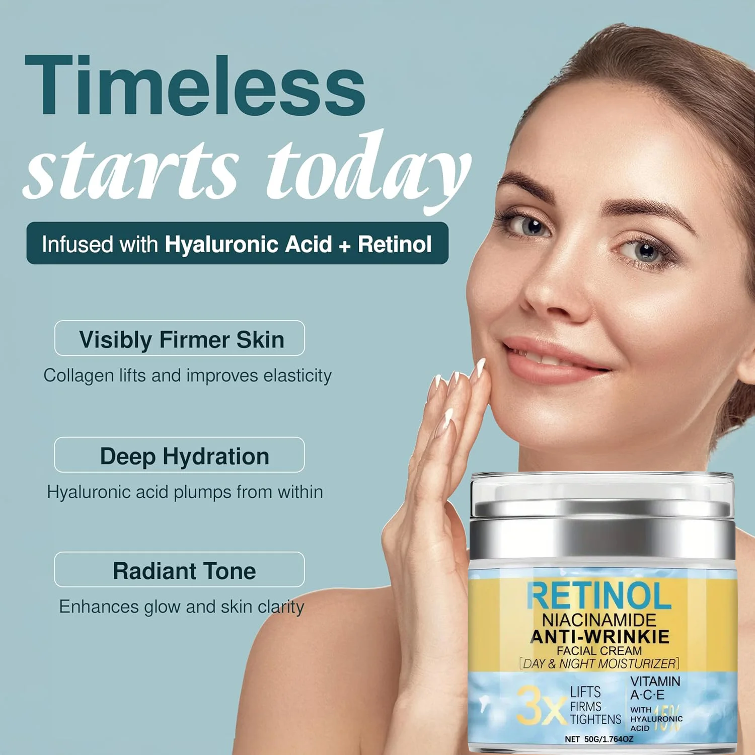 FORMULA ANTISCIVOLO PER PELLE SENZA CARATTERIE: Infusa con acido ialuronico, questa crema aiuta a idratare, levigare e ridurre la comparsa delle rughe.Il potente retinolo aumenta il ricambio cellulare, migliorando la consistenza e l’elasticità per una pelle visibilmente più soda e dall’aspetto più giovane con un uso continuato.