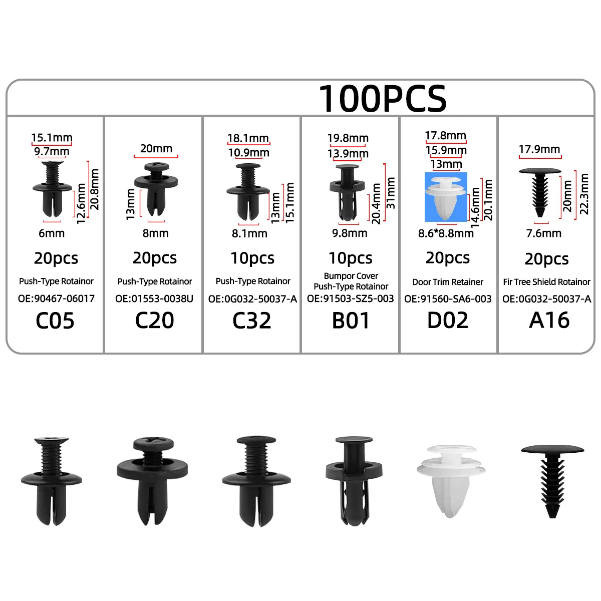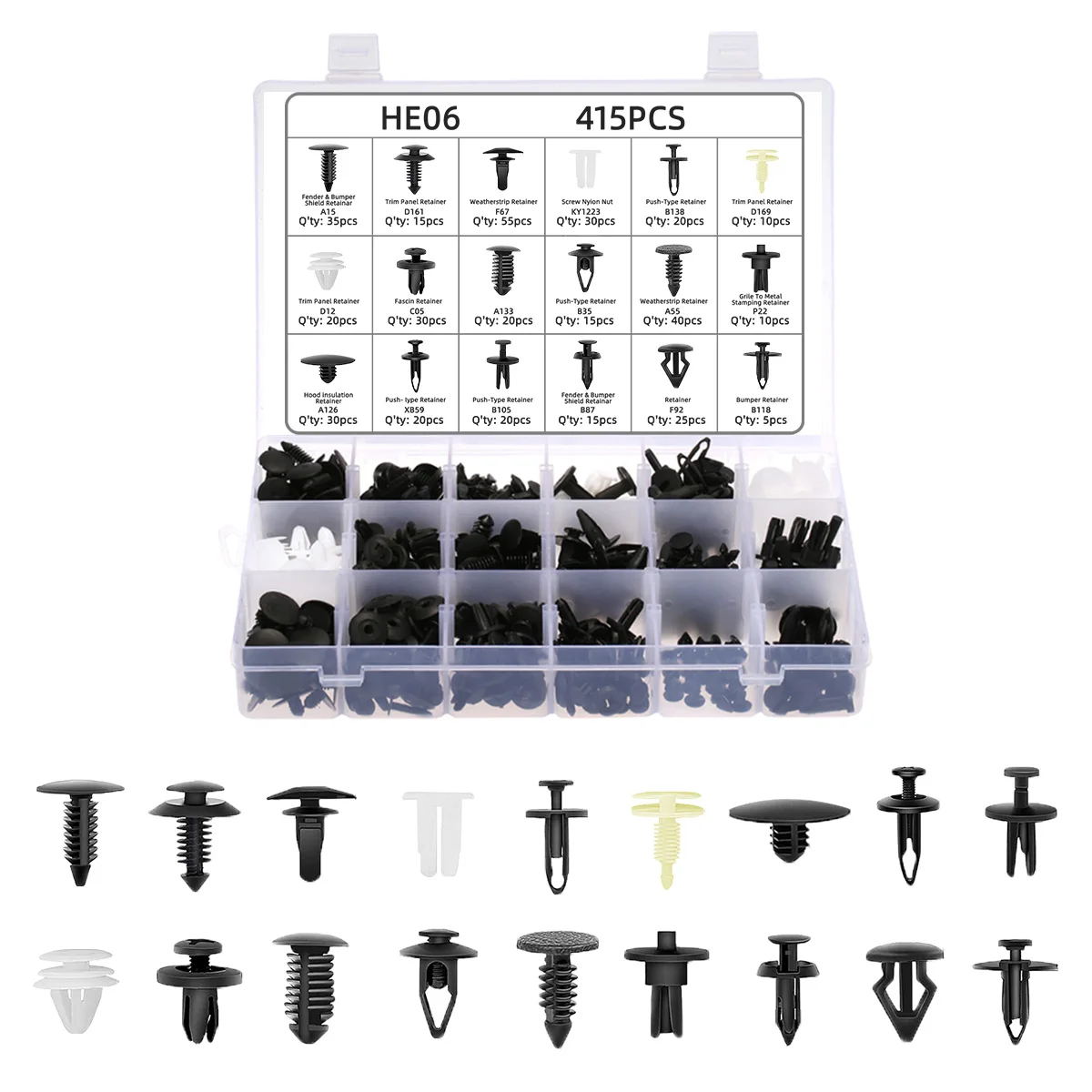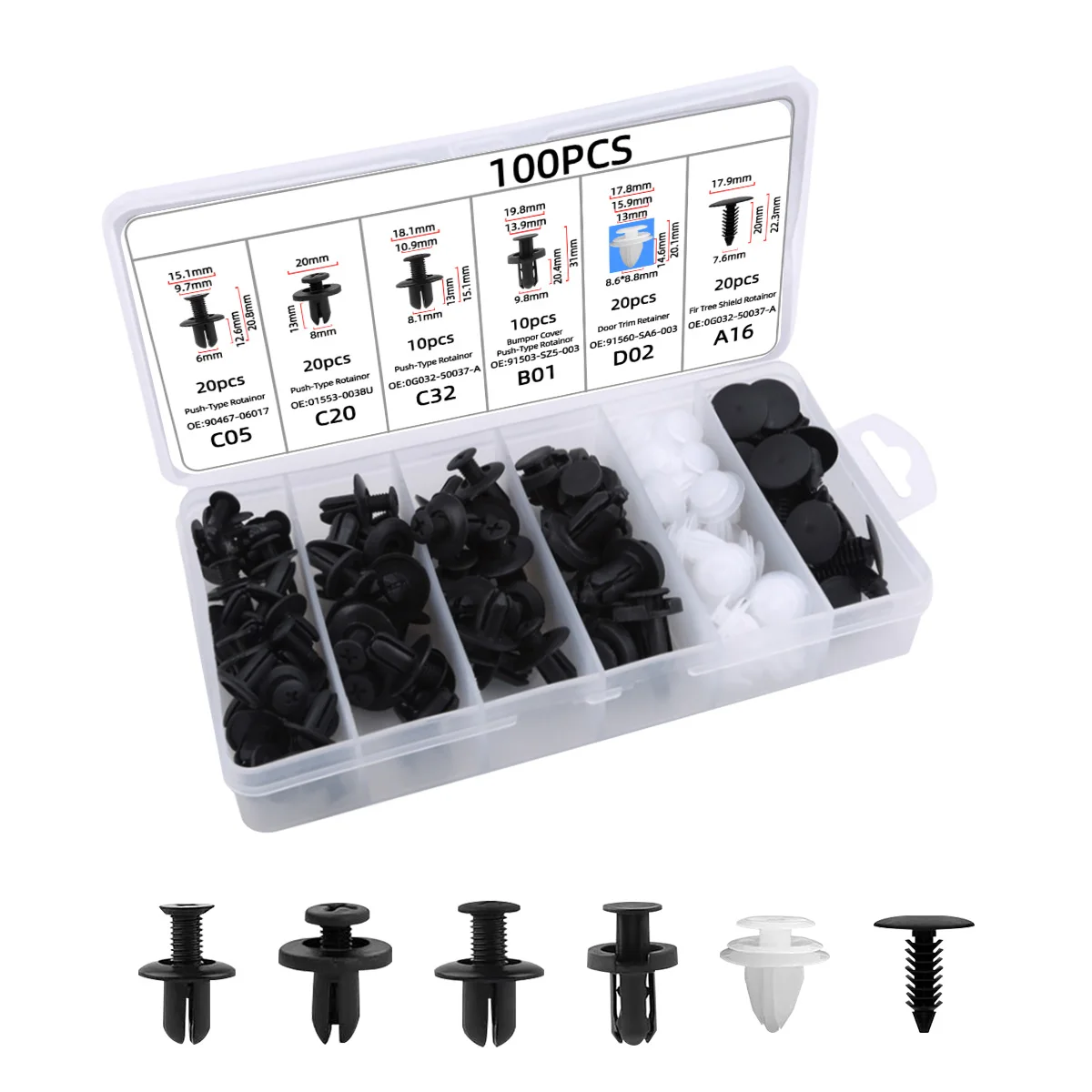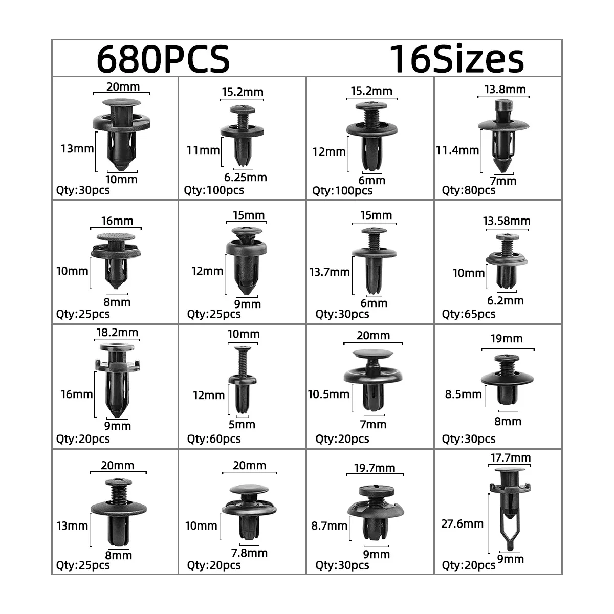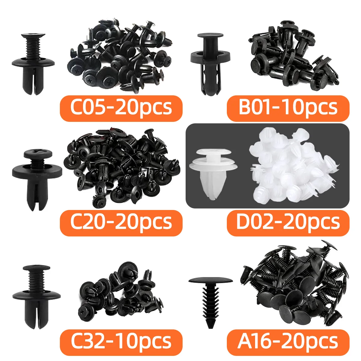 【 Ampiamente usato 】Le clip e gli elementi di fissaggio per auto sono adatti per automobili, elettrodomestici, mobili, apparecchiature elettriche, ecc.Possono essere utilizzati come clip per pannelli decorativi, clip per decorazioni per porte, clip per pannelli di porte, clip per paraurti, clip per parafanghi, coperture del motore, fermi per paraspruzzi e sostituzione di altri accessori interni.