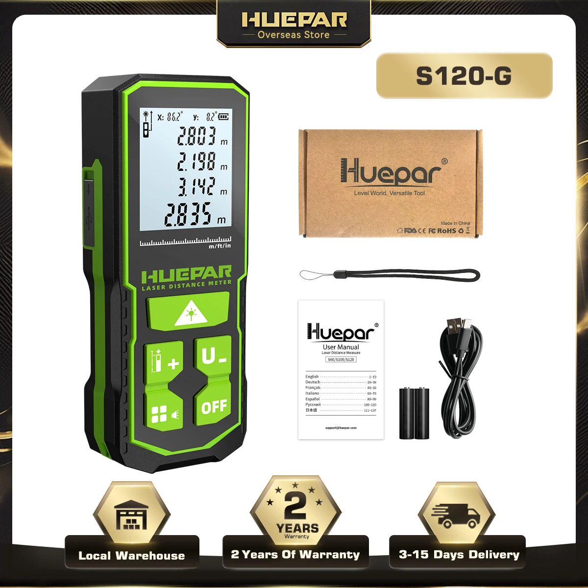 Specifiche della misurazione della distanza laser Huepar S120-G: | |||