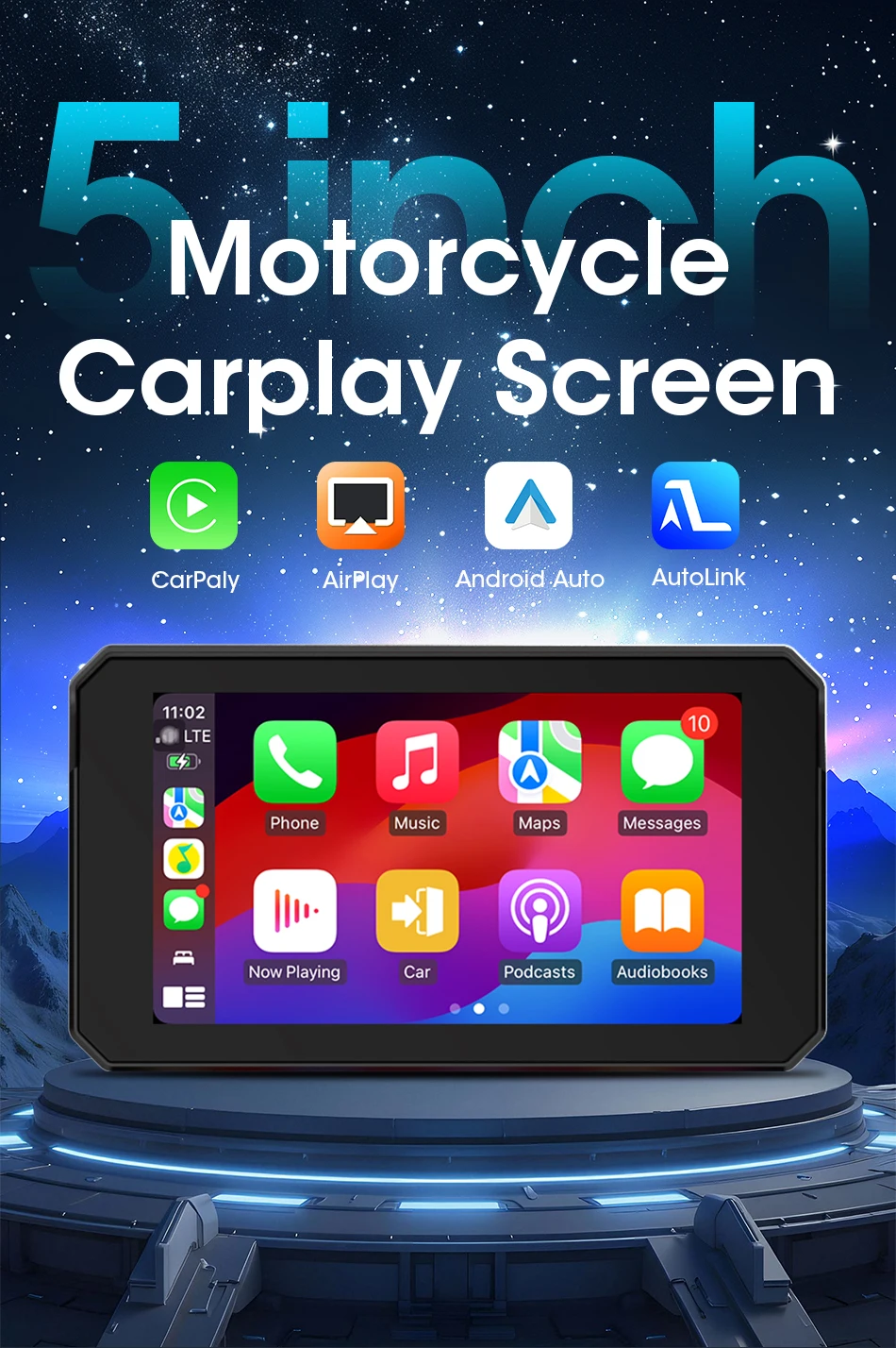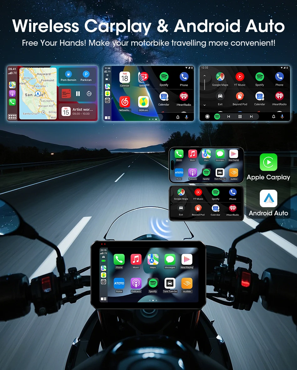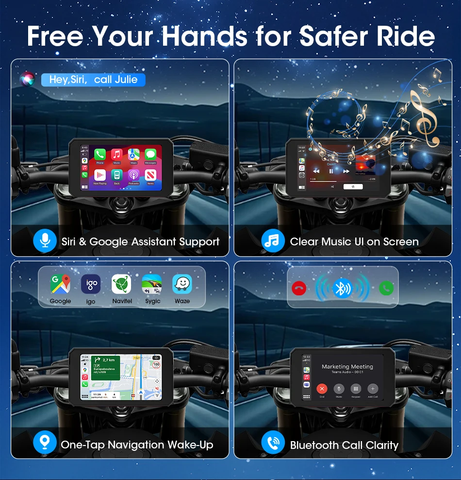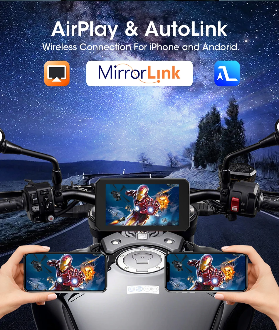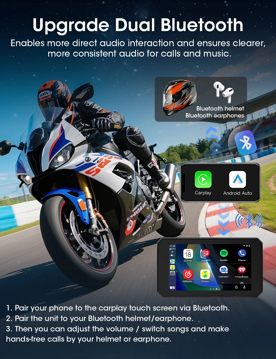 Jansite Doppio Bluetooth Moto Carplay Schermo Navigazione Display GPS IP67 Supporto impermeabile Interfono per casco Accessori moto