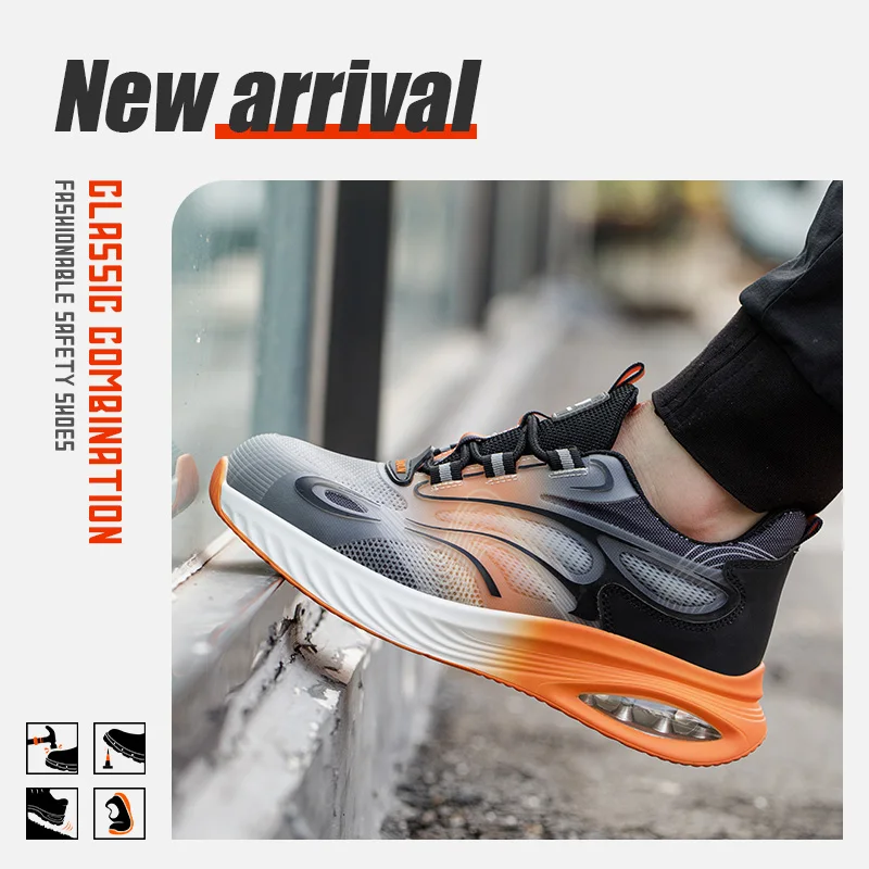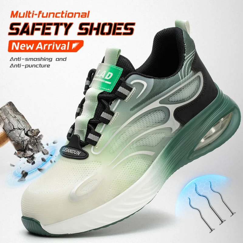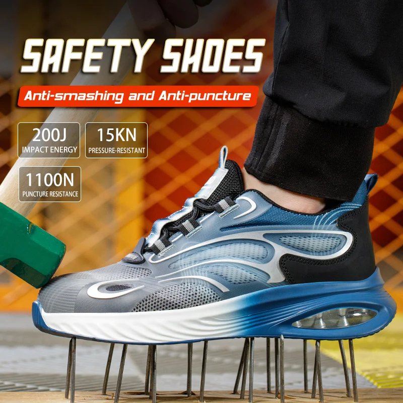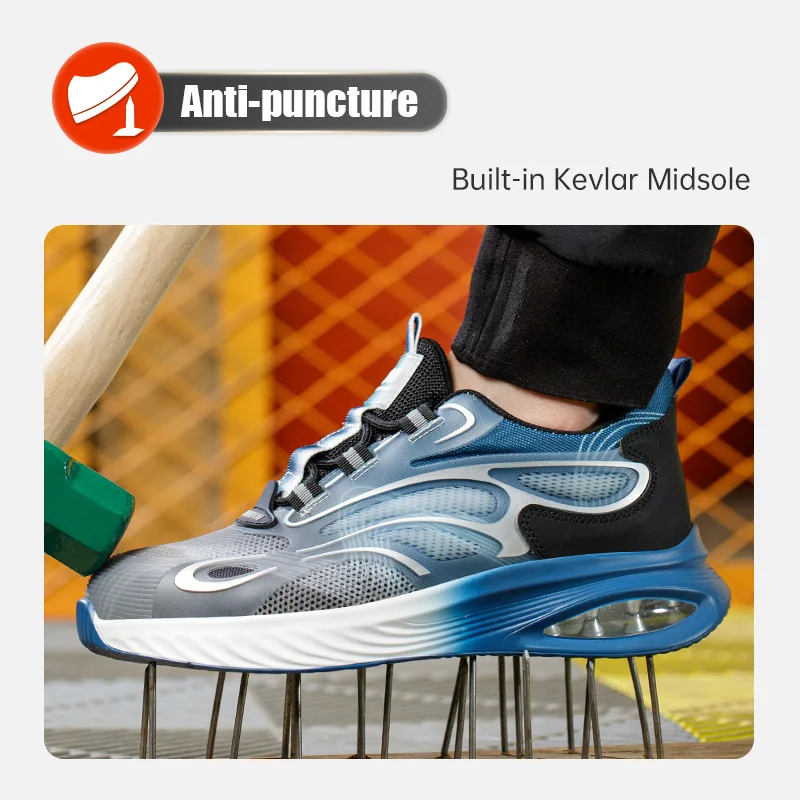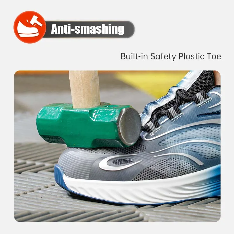 Leiandun Scarpe antinfortunistiche da lavoro leggere in tessuto traspirante con punta in plastica alla moda anti-sfondamento per la costruzione