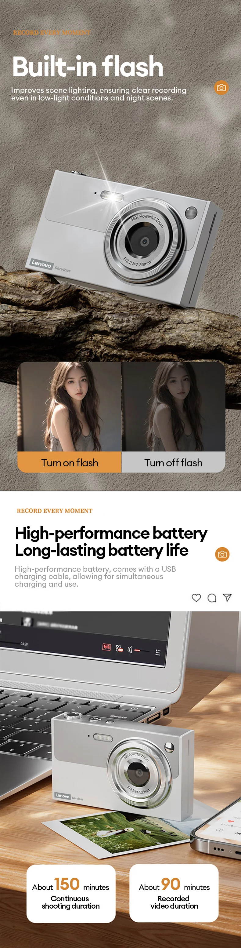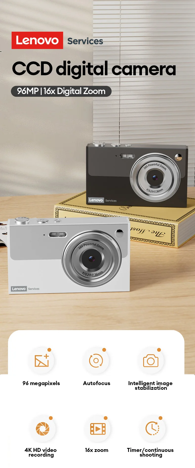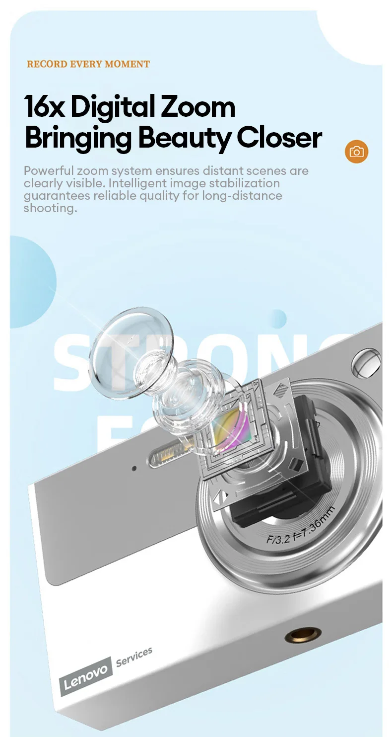 Fotocamera digitale Lenovo 96MP 16X Fotocamera con zoom digitale Studente Video digitale anti-shake all’aperto Autofocus con scheda 32G XJ22