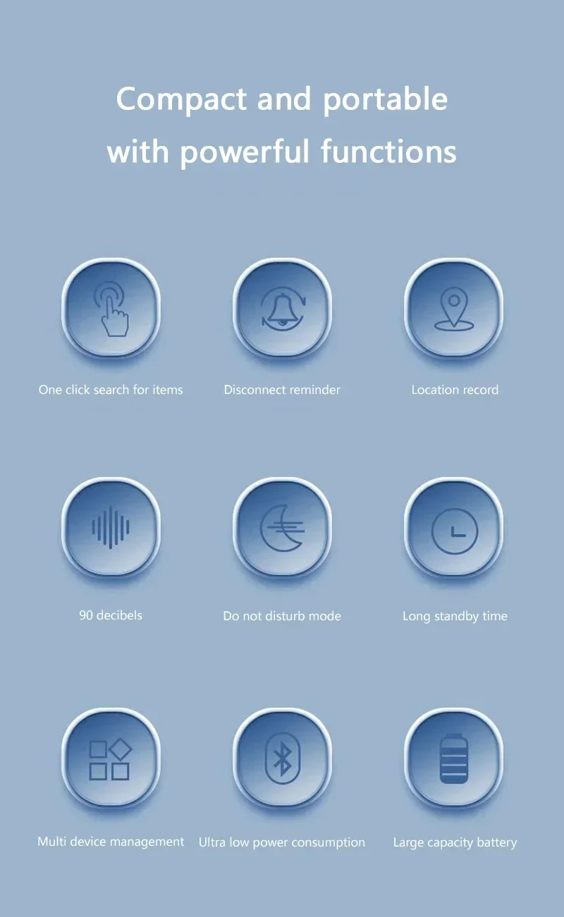 *Facile trovare i tuoi articoli: questo tag di localizzazione è semplice da usare.Quando sei a una certa distanza dall’oggetto, puoi riprodurre il suono sull’app.Il suono forte individuerà l’oggetto in modo più accurato in modo da poterlo trovare rapidamente.