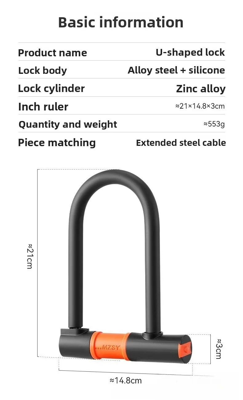 Lucchetto per bicicletta Lucchetto a forma di U in acciaio legato Cavo in acciaio audace Lucchetto antifurto Lucchetto per bicicletta elettrico Attrezzatura per l’equitazione