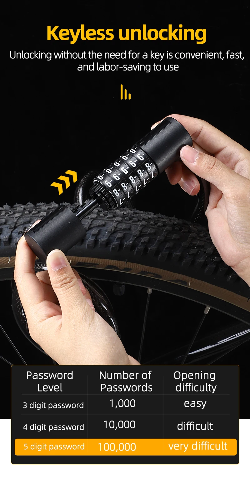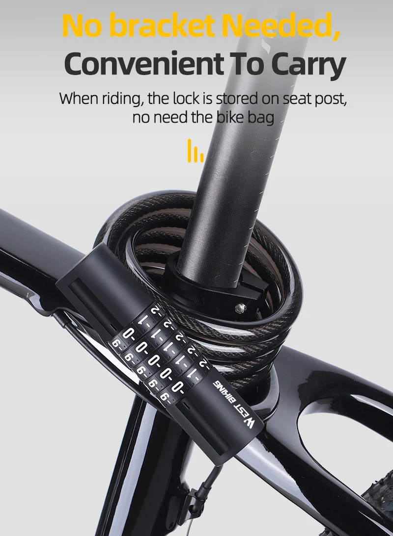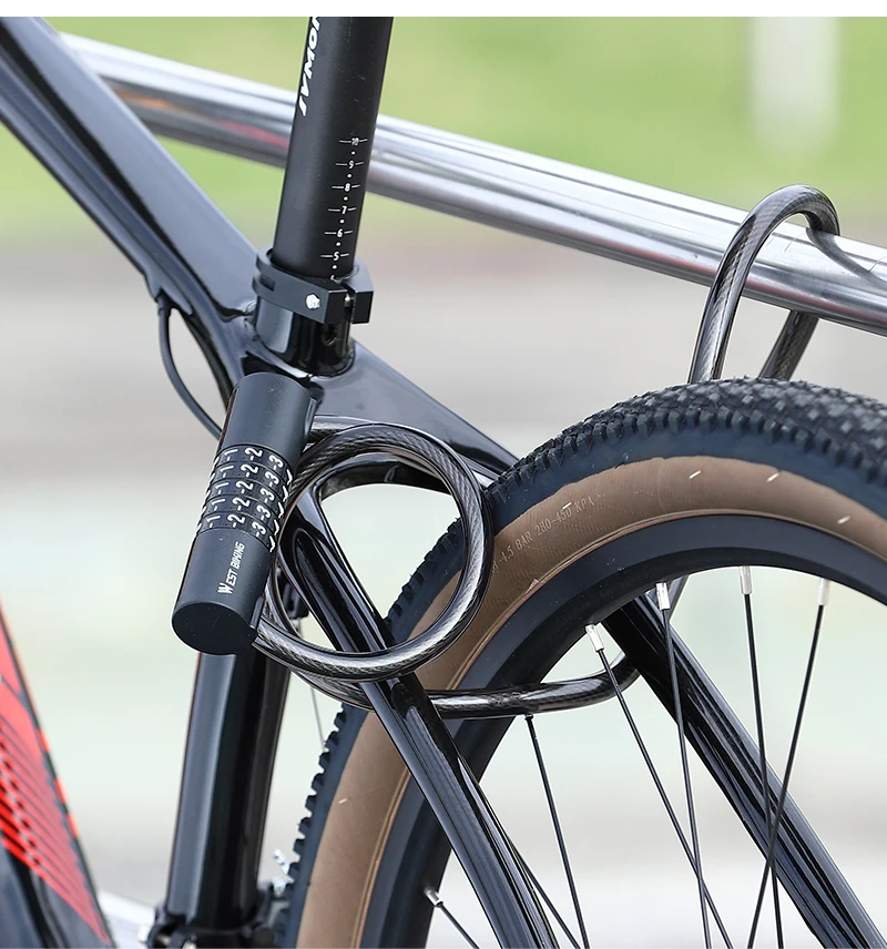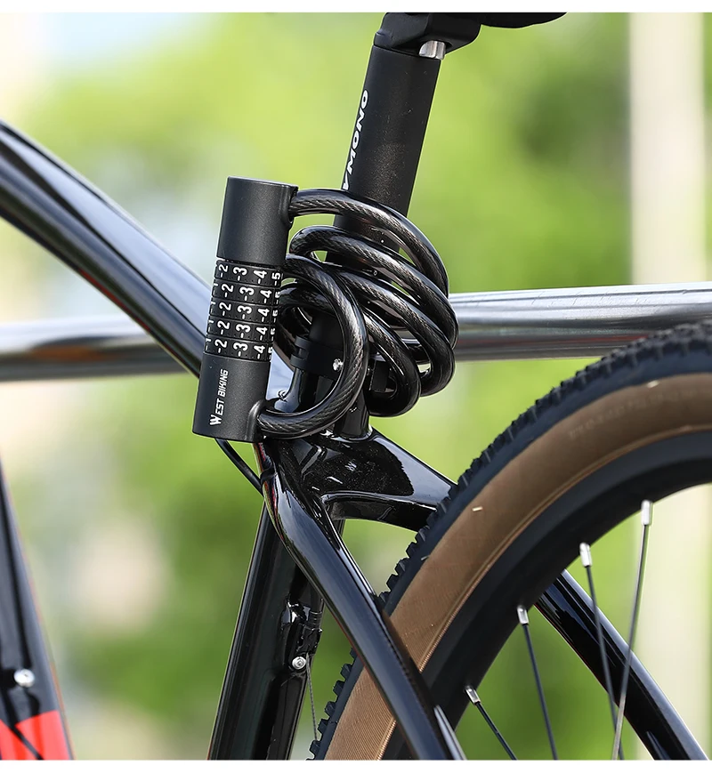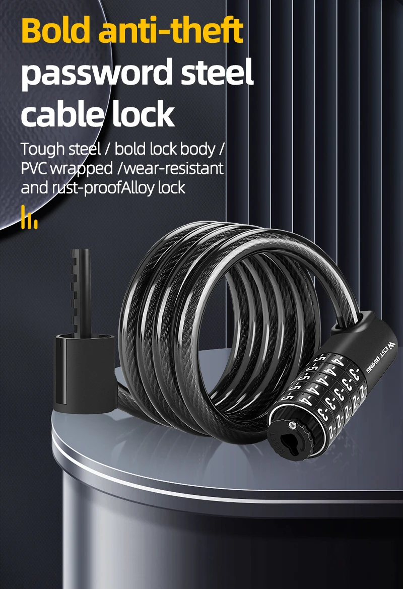 Lucchetto per Bicicletta WEST BIKING con Cavo e Codice a 5 Cifre, Antifurto di Sicurezza per Bici, Moto, E-bike, Accessori per MTB e Bici da Strada