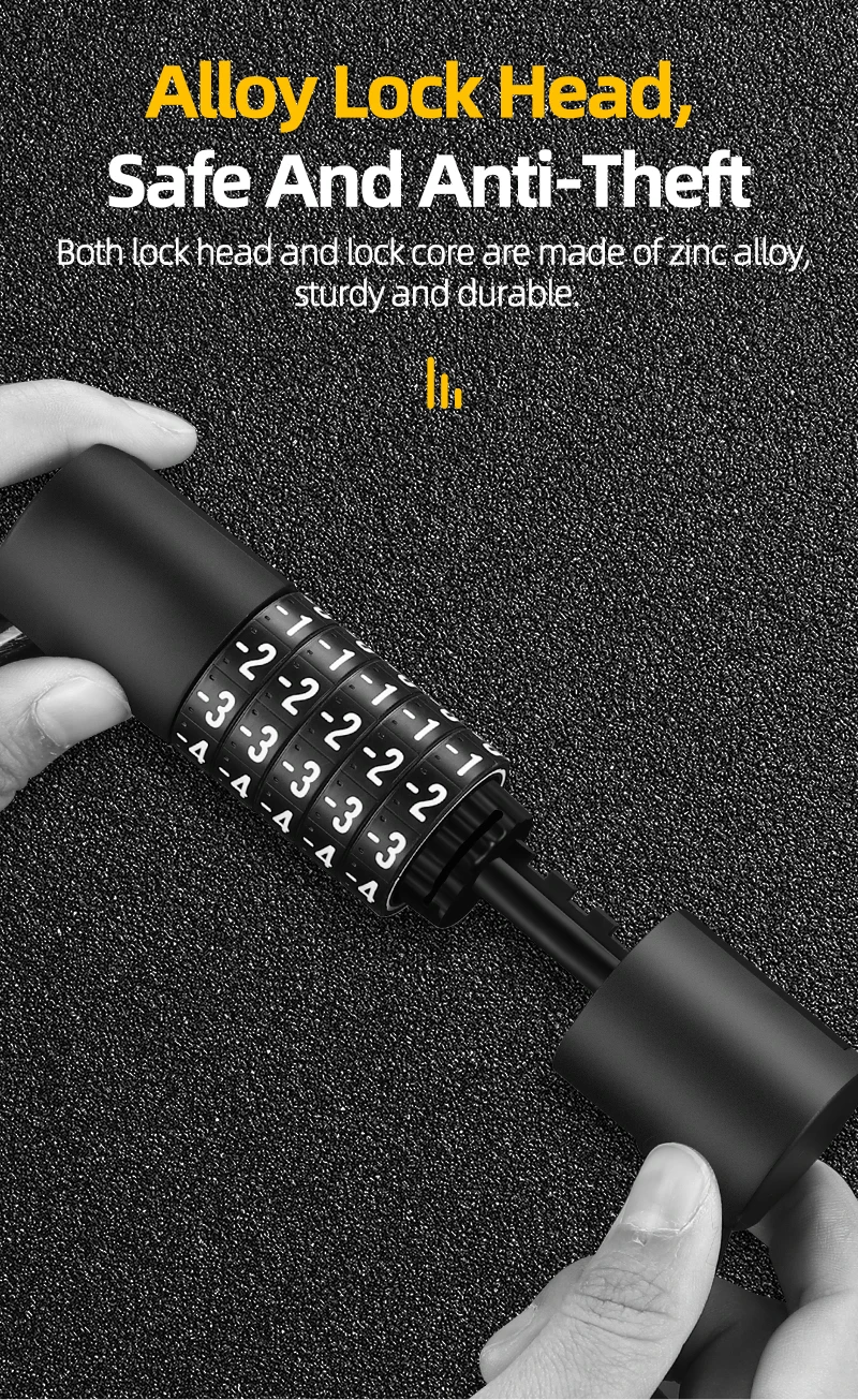 Proteggi il tuo veicolo con un lucchetto a combinazione a 5 cifre, per una maggiore sicurezza contro i furti.