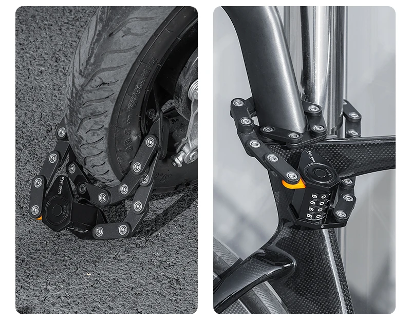 Il materiale in lega resiste a tagli e tentativi di scasso, garantendo la sicurezza del tuo veicolo in luoghi pubblici.