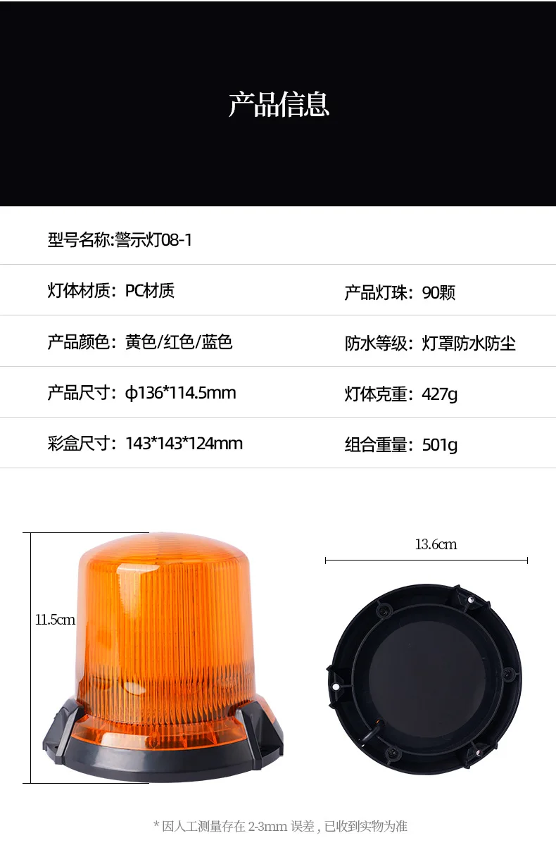 Luce lampeggiante di emergenza per auto Macchinari di ingegneria Bus scolastico Spia stroboscopica rotante Segnale di avvertimento di sicurezza stradale Faro