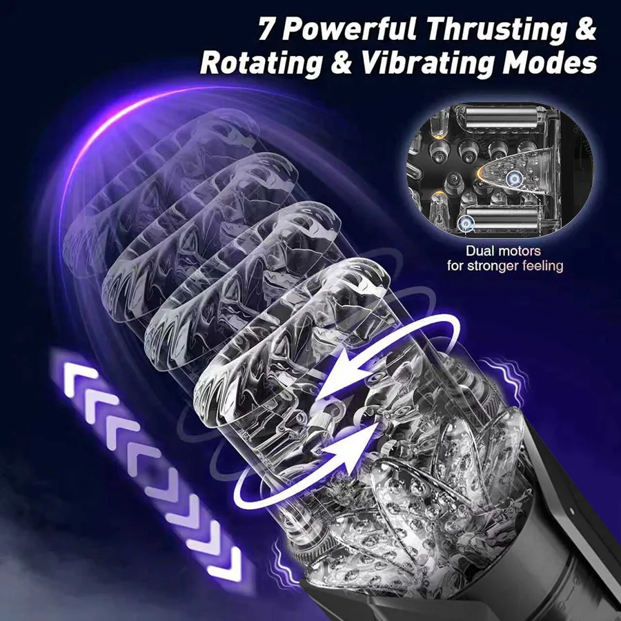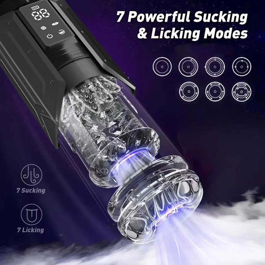 Pompa per pene con masturbatore maschile – Giocattoli sessuali maschili per uomini con pompa per vuoto 12 S aggiornata e 7 spinte rotanti vibranti succhiare leccate LCD Giocattoli per adulti Giocattoli sessuali per uomini Pompe ed ingranditori