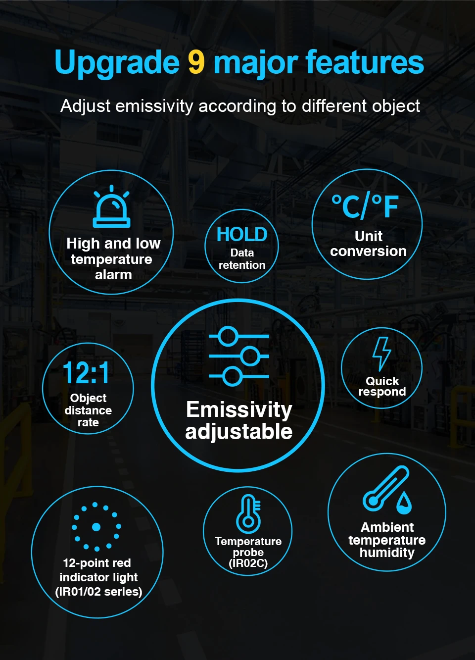 | Emissivity | 0.1~1 ajustable |