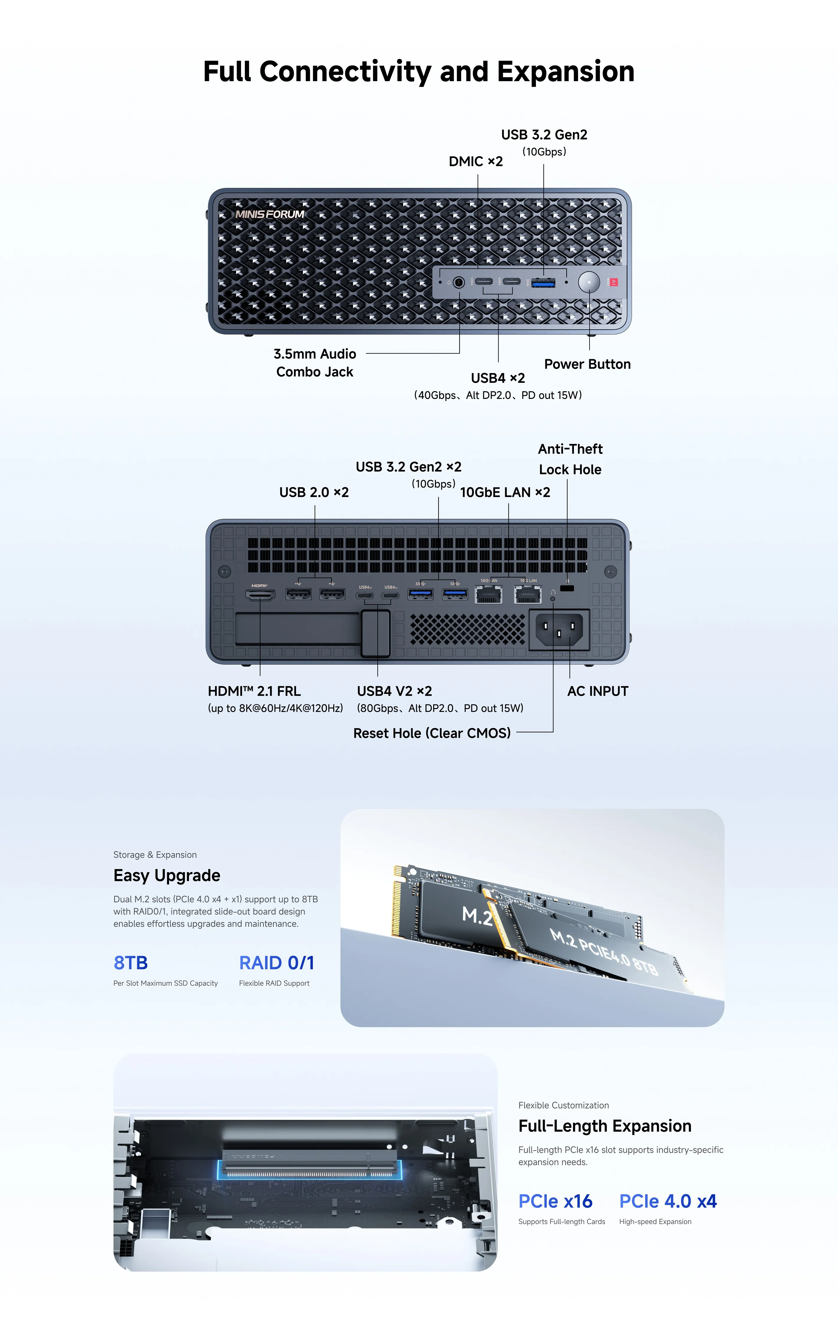 1 slot SSD M.2 2280 NVME (fino a 8 TB, PCIe 4.0 x1)