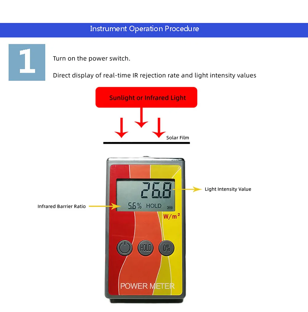 Recensisci per primo “Misuratore di energia solare IR pellicola isolante per auto vetro per vetri Test termoisolante intensità a infrarossi con Tester di energia del valore di rifiuto”