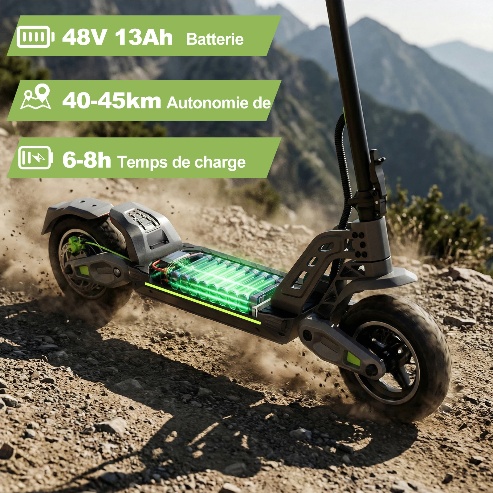 IlMonopattino elettrico TODIMART E6è alimentato da unBatteria 48V 13Ahoffrendo un’autonomia pratica di guida di40-45 chilometriIdeale per il pendolarismo quotidiano e l’uso urbano regolare.